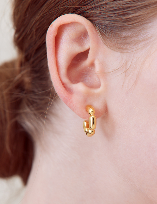 光澤米粒拼接C型。夾式耳環(金)