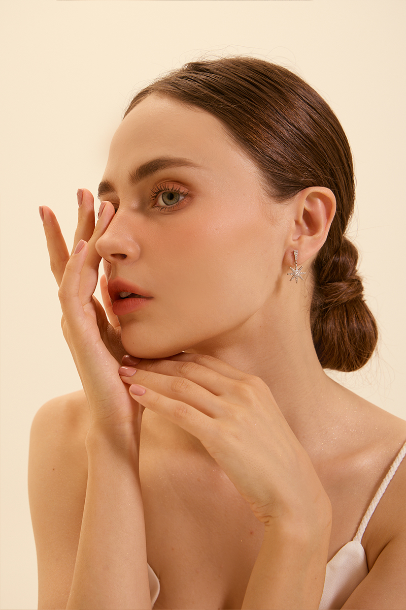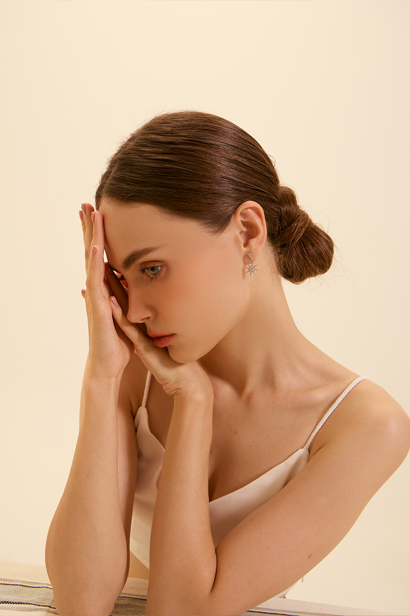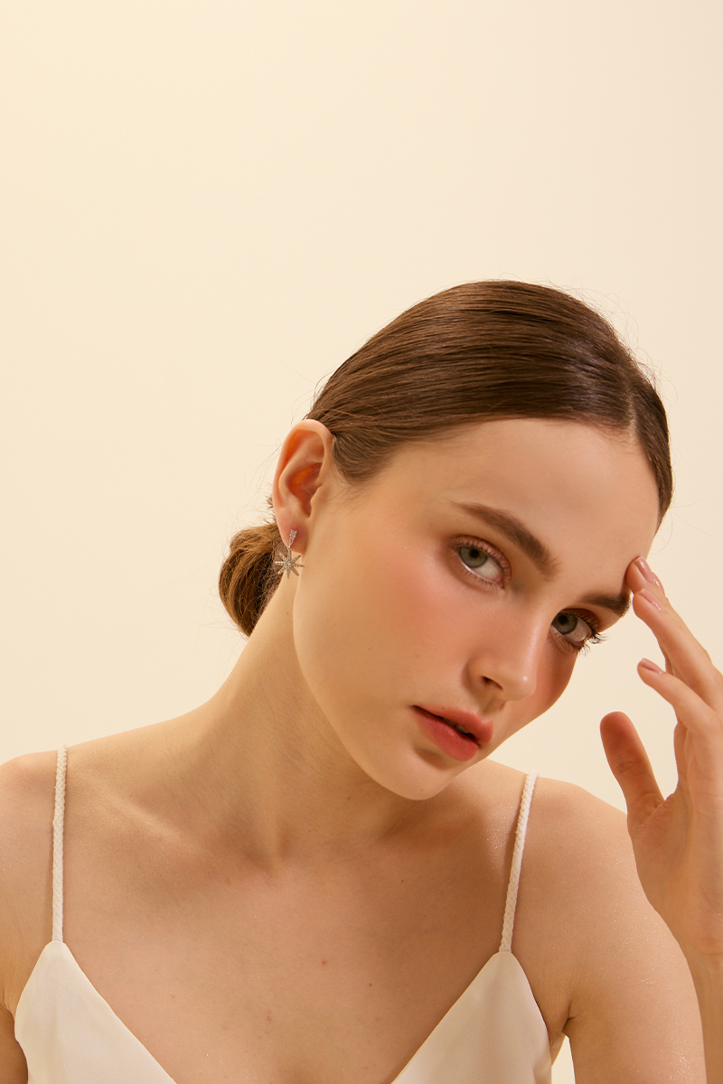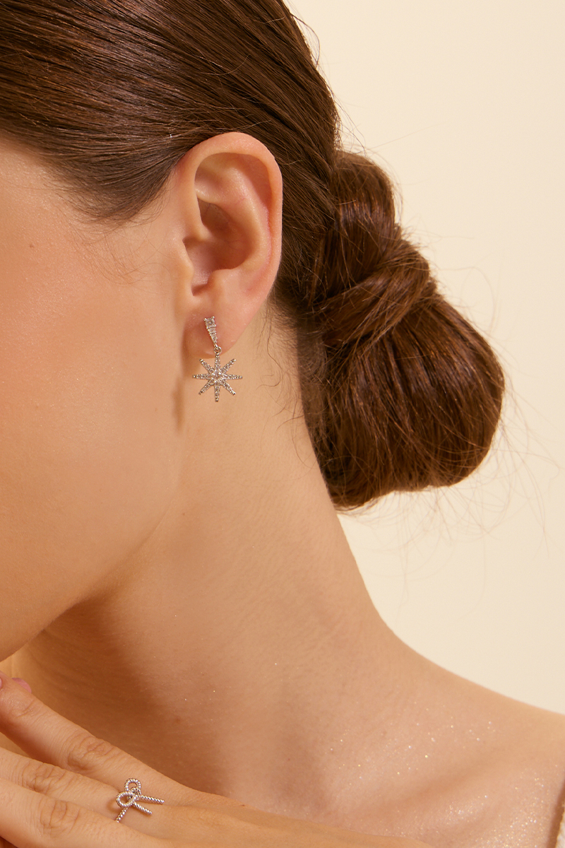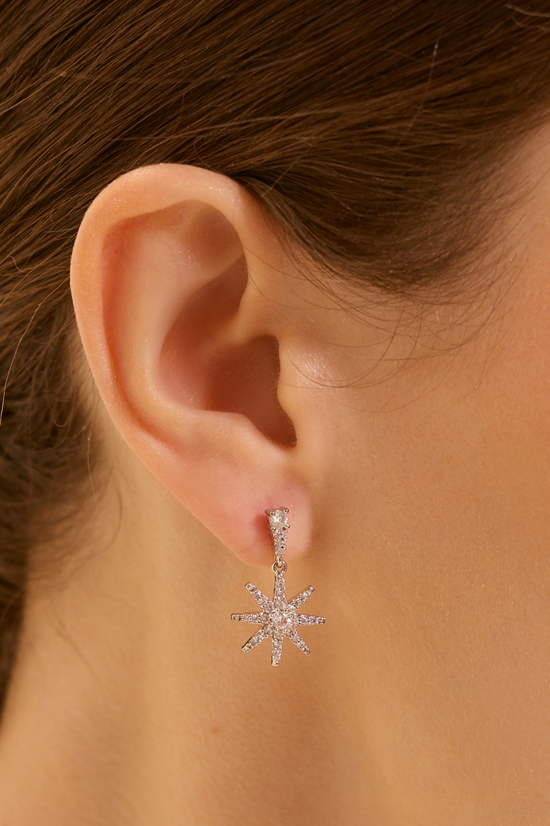 商品名稱:八芒鑽星 。銀針耳環(銀)