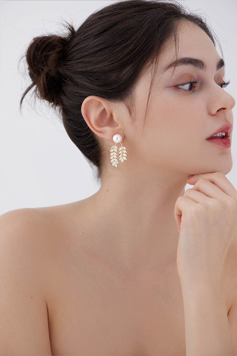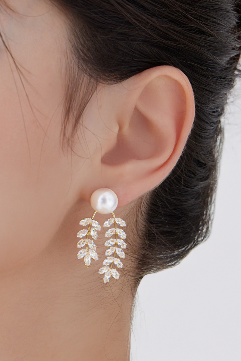 材質:16K金電鍍銅/手工珍珠/鋯石/925銀針