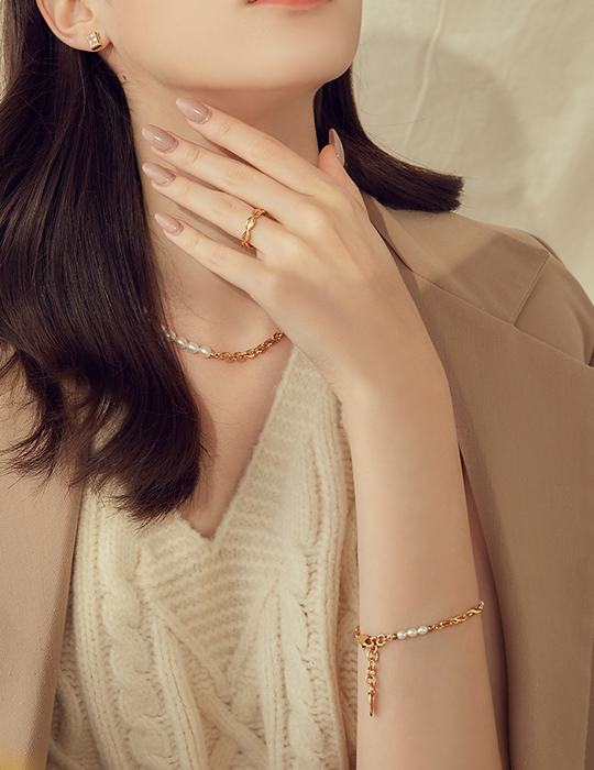 (本商品採用天然淡水珍珠,每顆形狀與大小皆略有差異,表面細微坑洞與紋理為自然生成,非屬瑕疵狀況)
