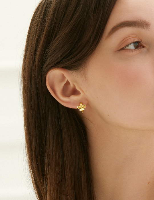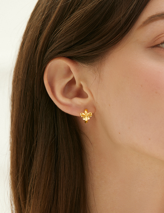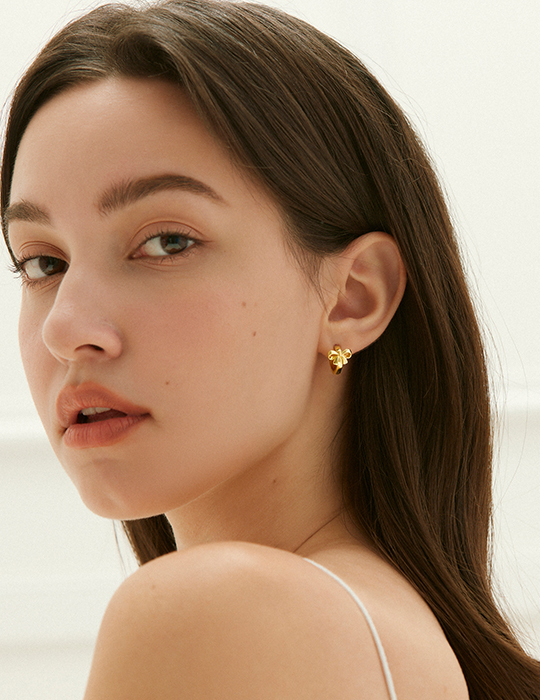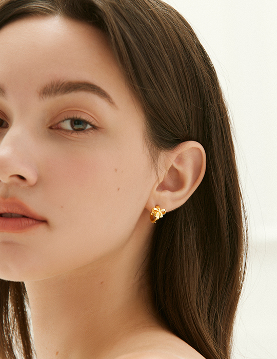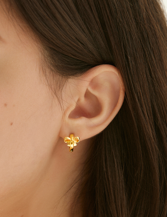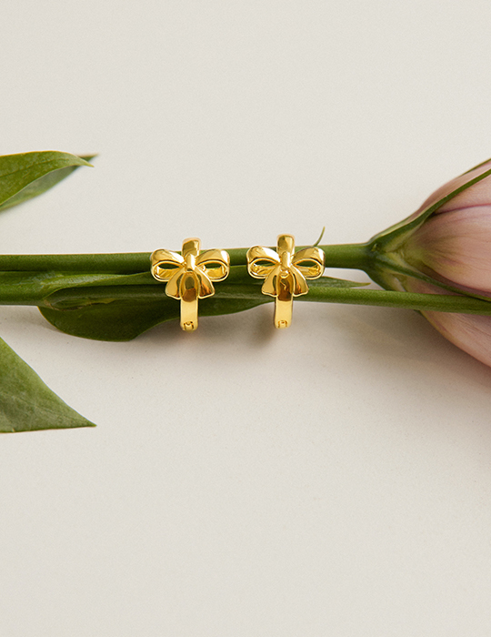 圈型光澤蝴蝶結。銀針耳環