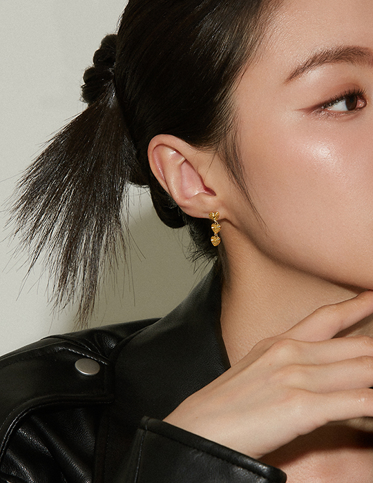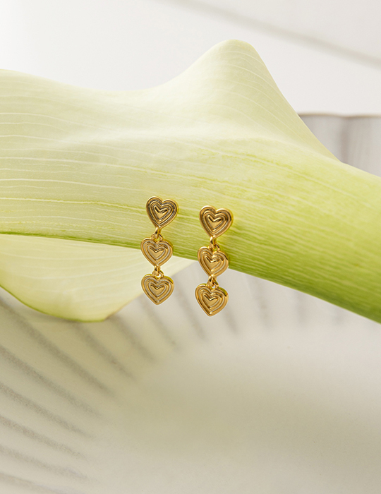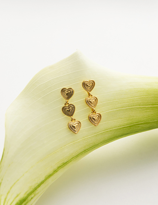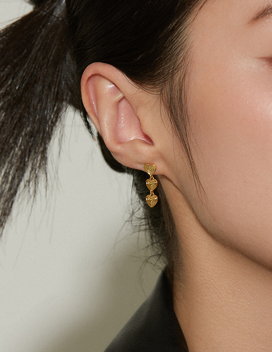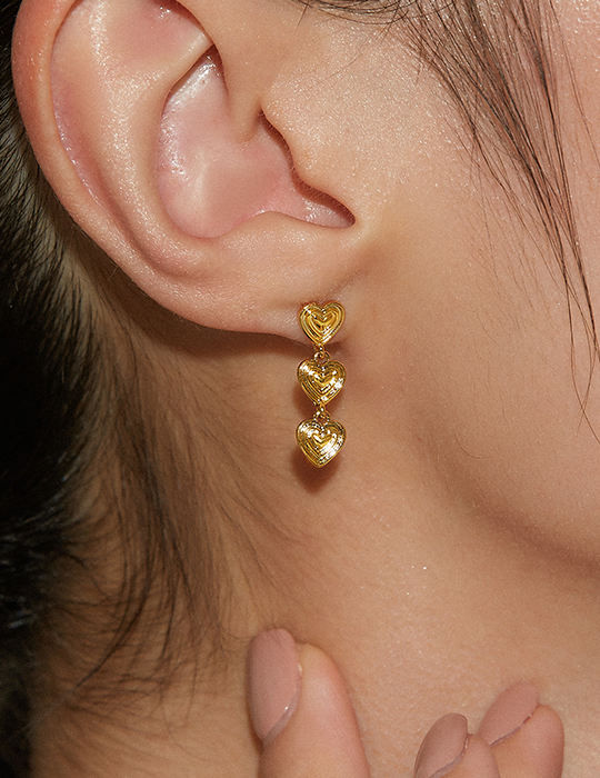 商品名稱:垂墜小甜心壓紋。銀針耳環(金)