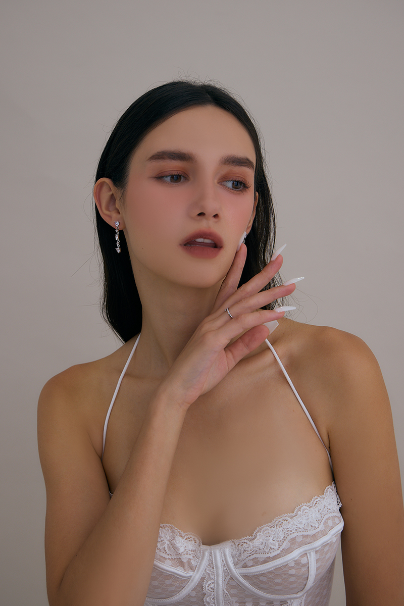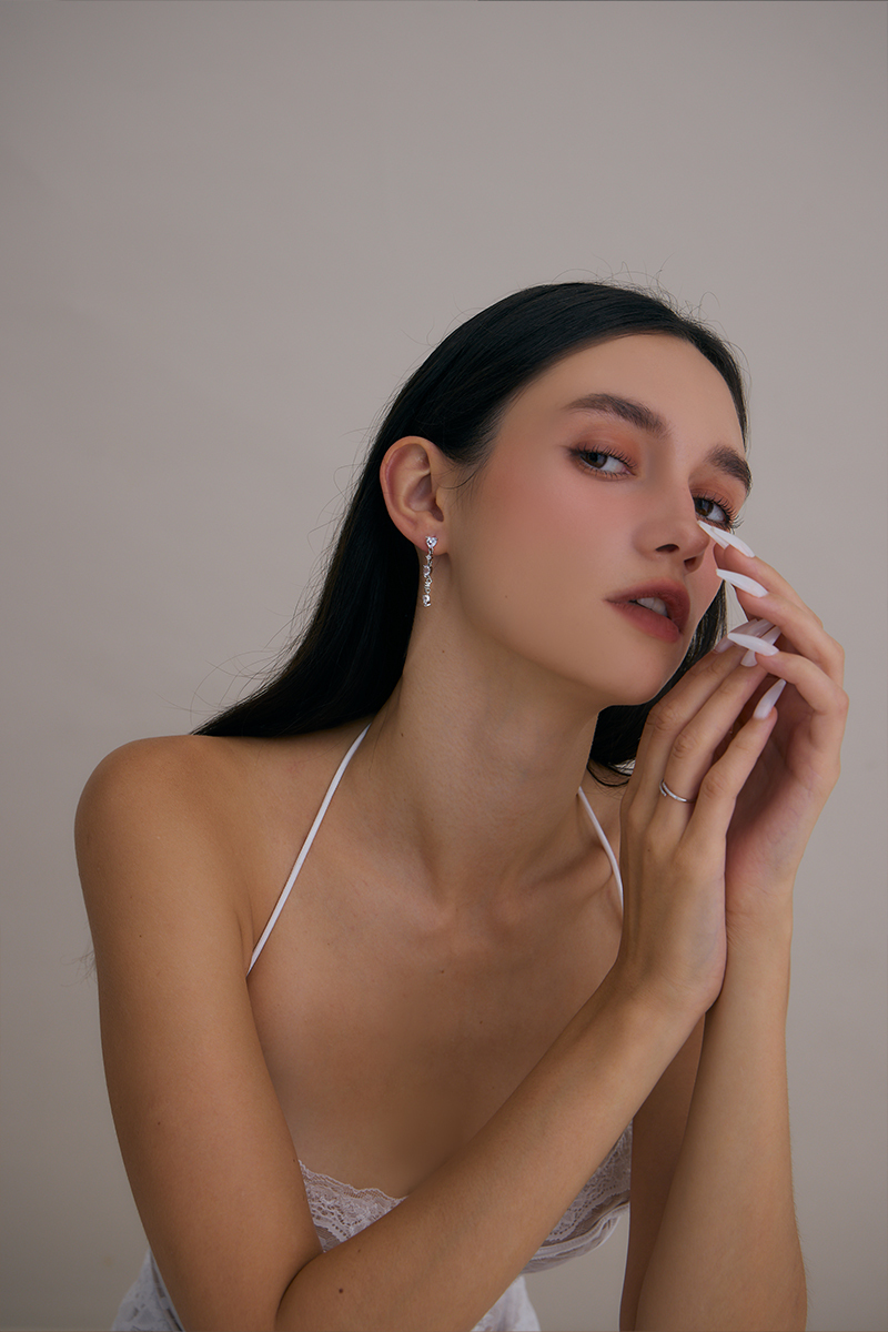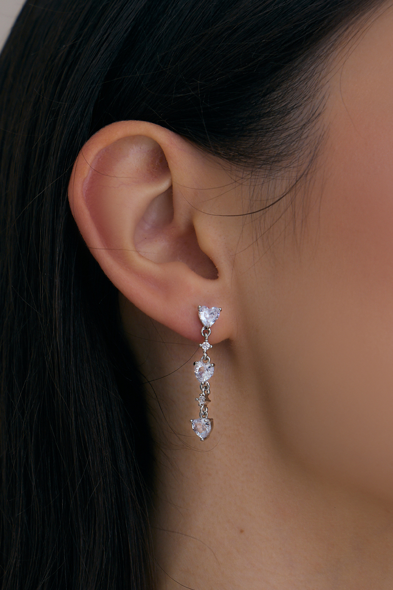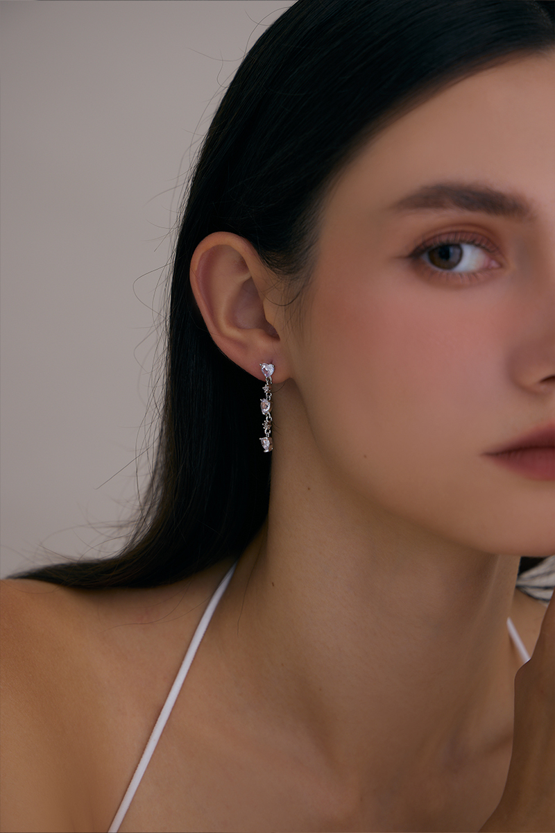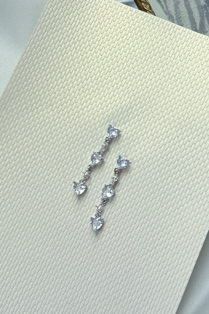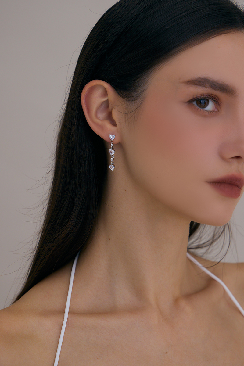 商品名稱: 垂墜愛心鑽石。銀針耳環