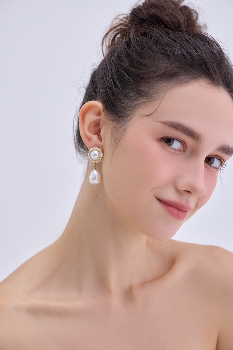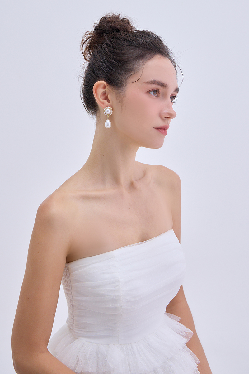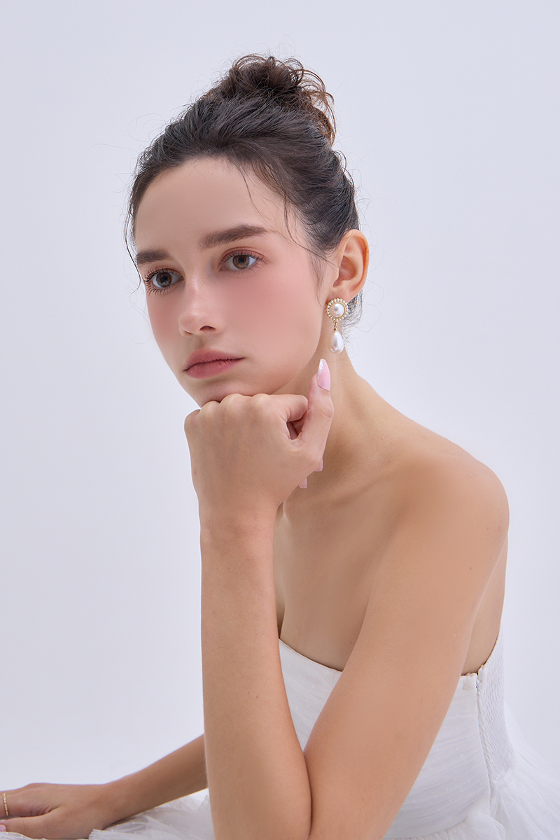 商品名稱:垂墜水滴珍珠。銀針耳環