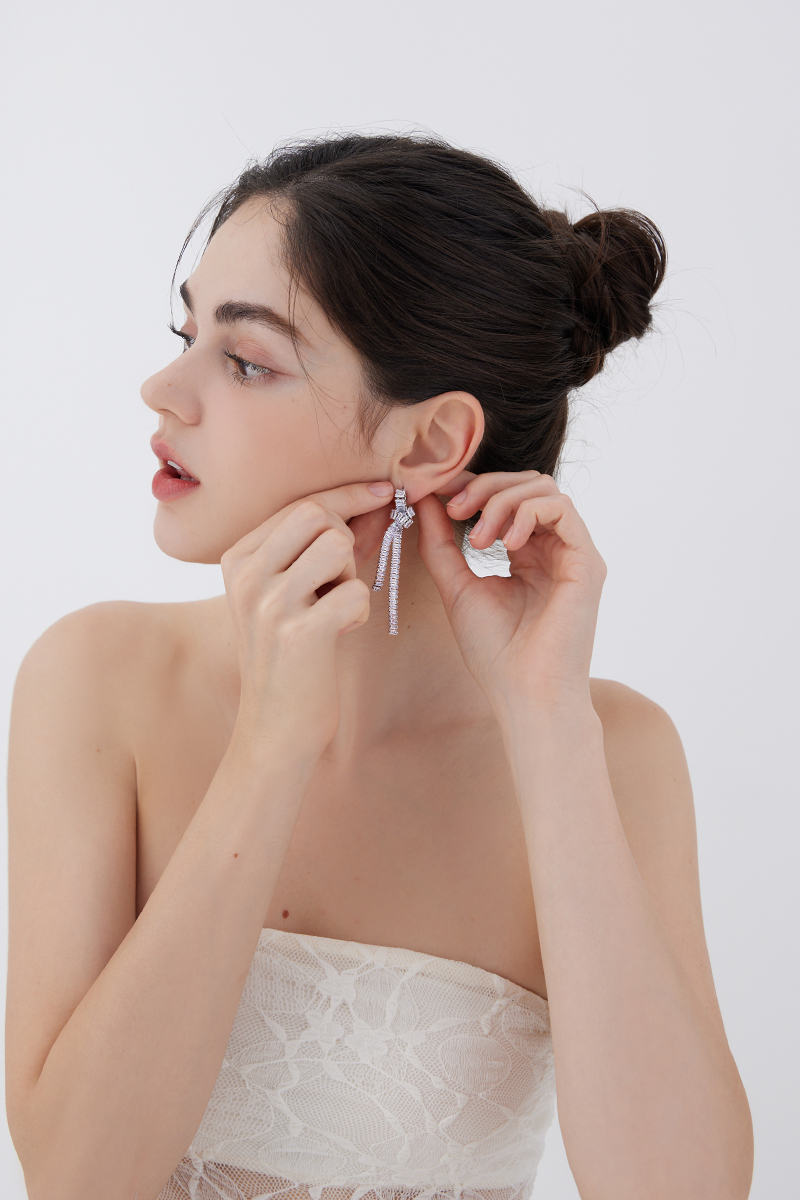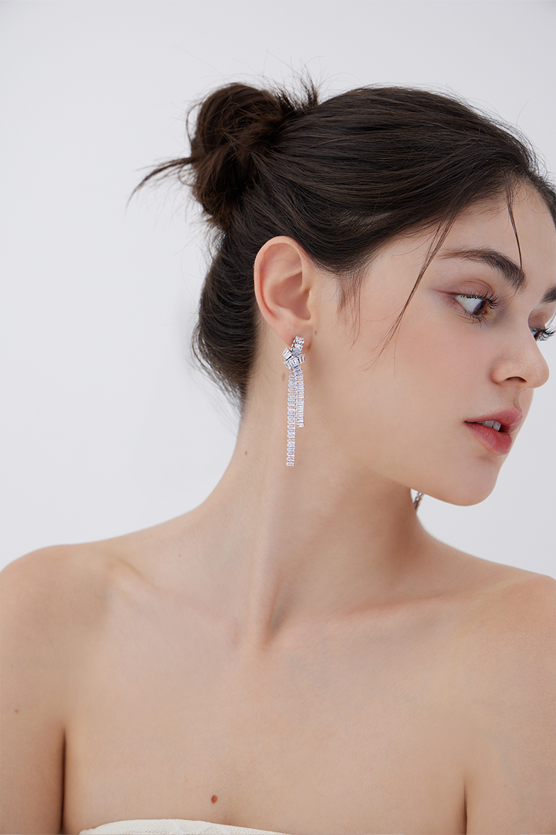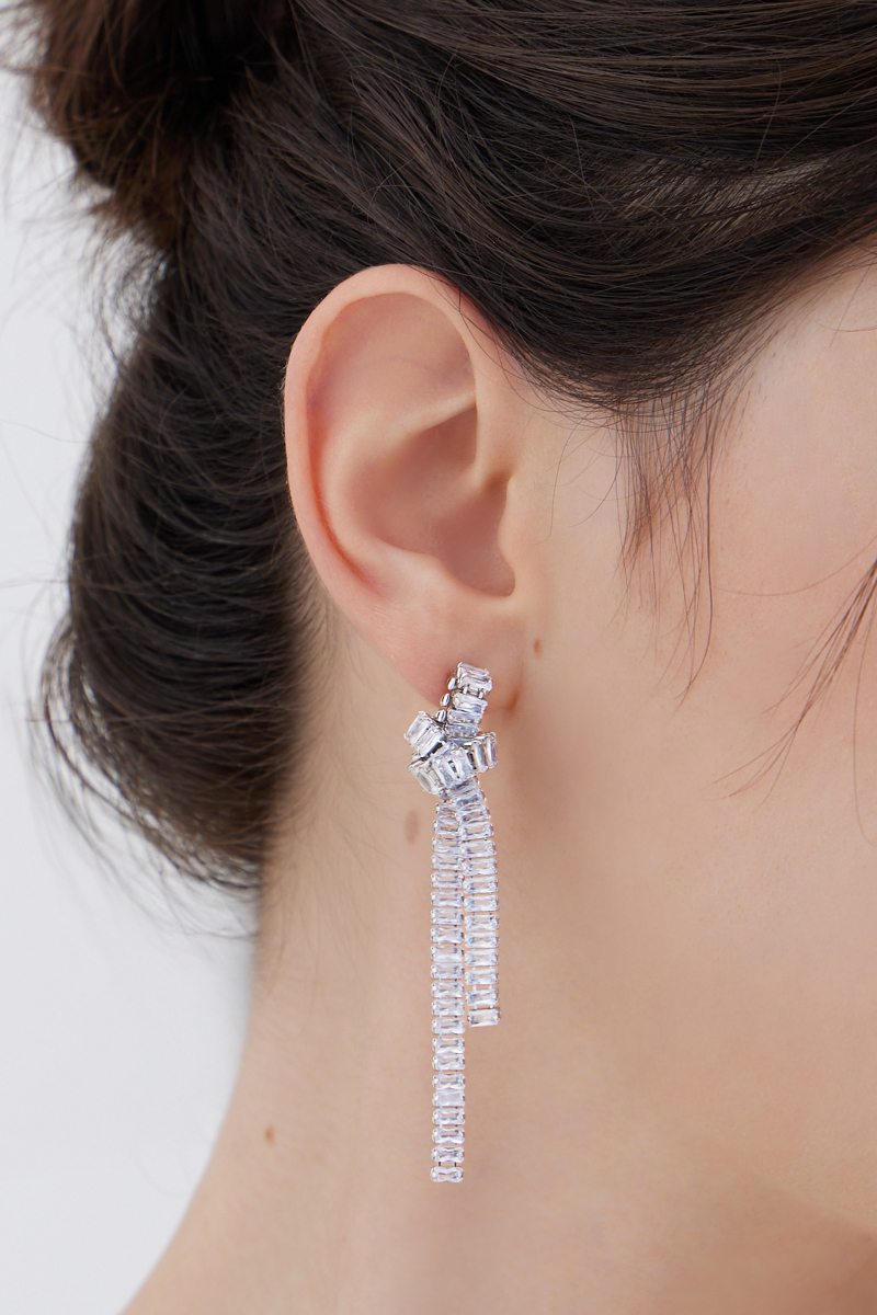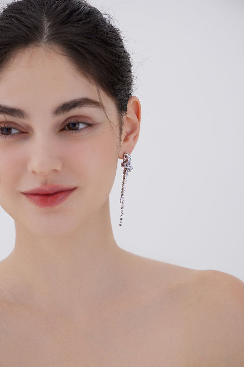 商品名稱: 垂墜流蘇鋯石。針式耳環(銀)