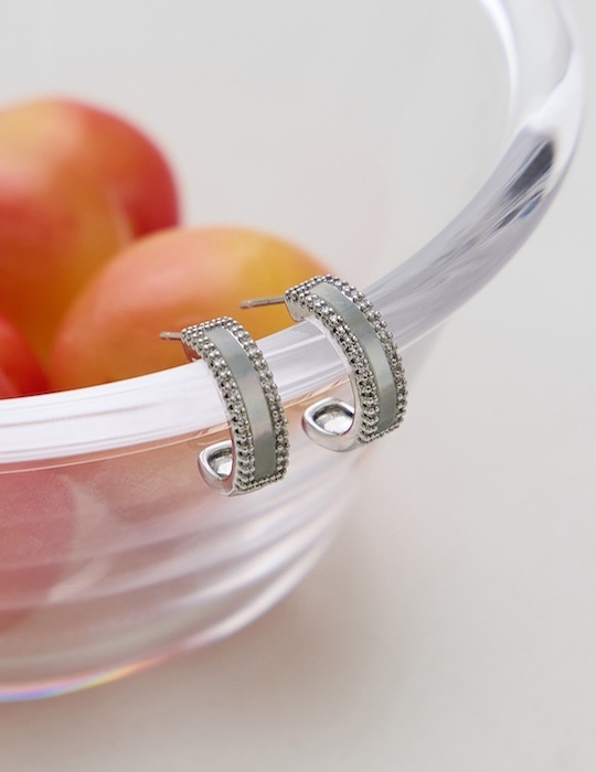商品名稱:奢華光澤貝片。銀針耳環(銀)