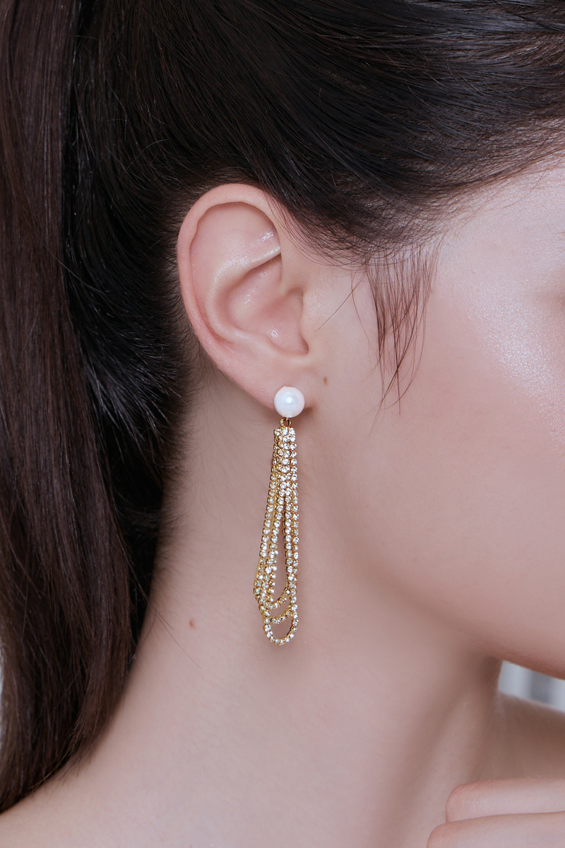 商品名稱: 奢華滿鑽線形珍珠。針式耳環