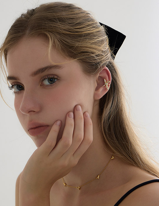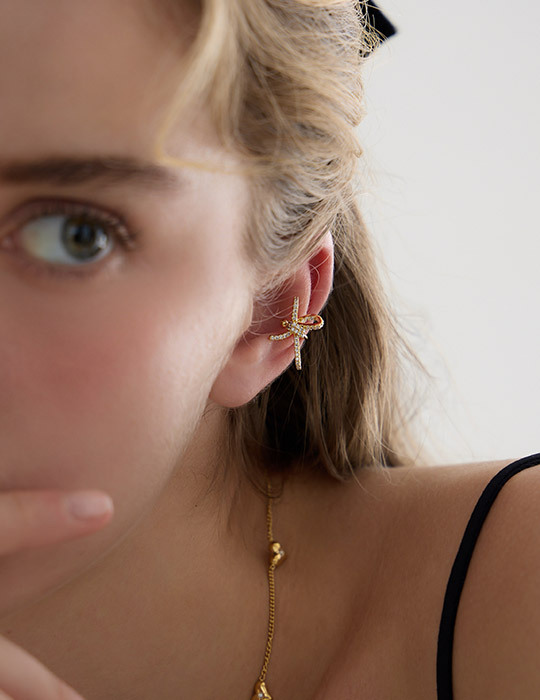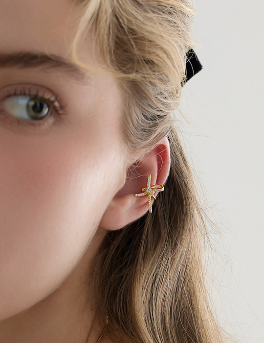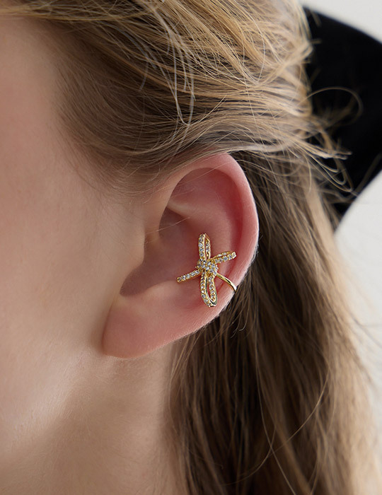 奢華滿鑽蝴蝶結耳骨夾(金)(單支)