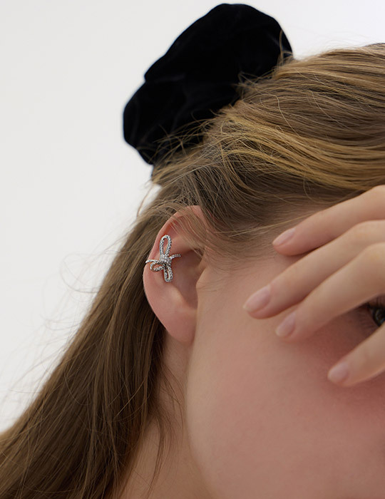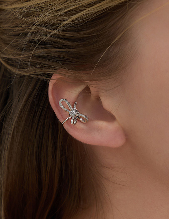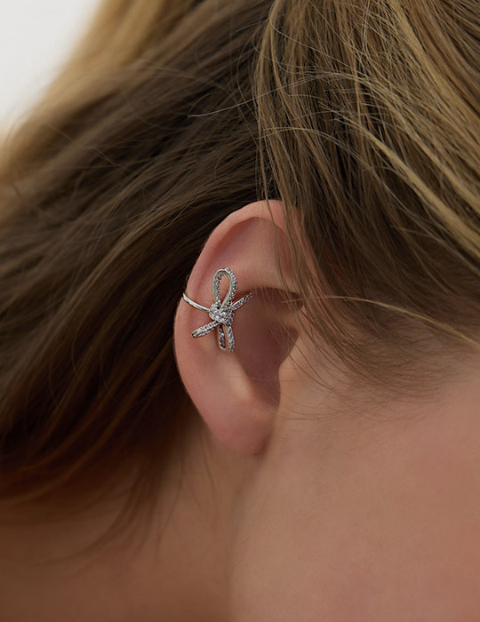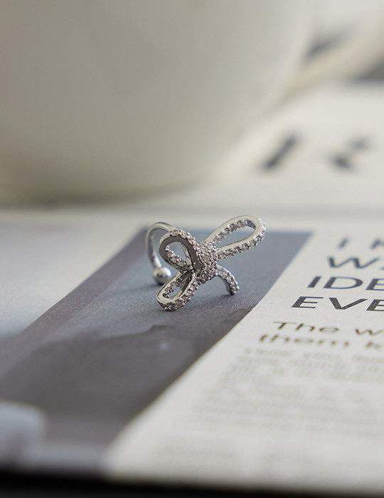 奢華滿鑽蝴蝶結耳骨夾(銀)(單支)