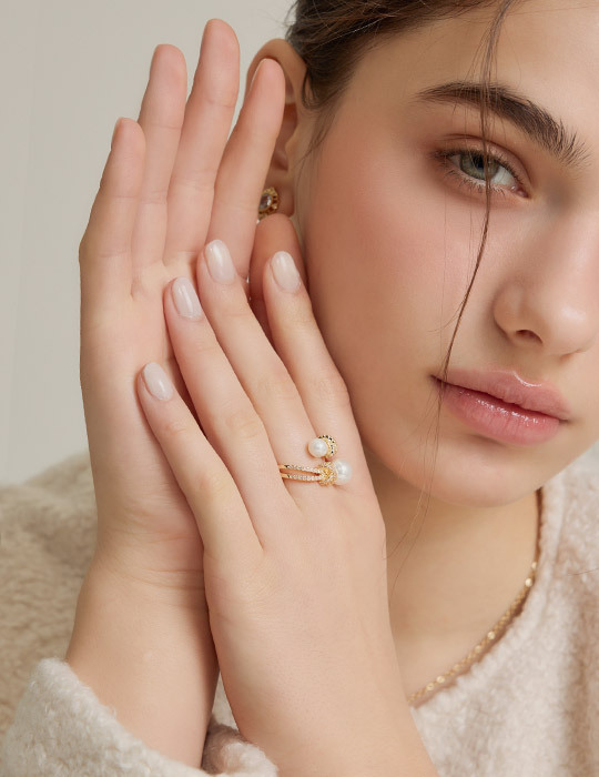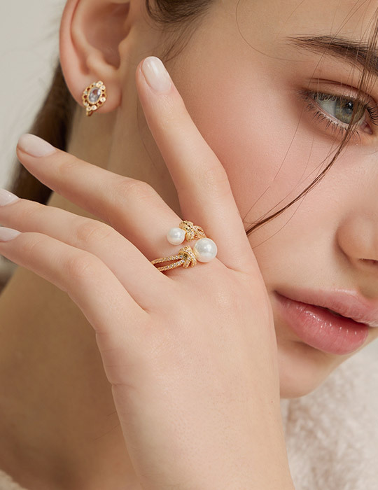 材質:14K金電鍍銅/鋯石/手工珍珠