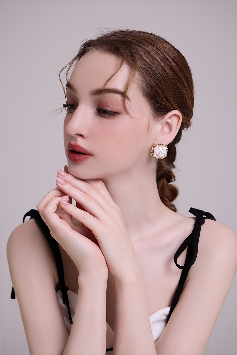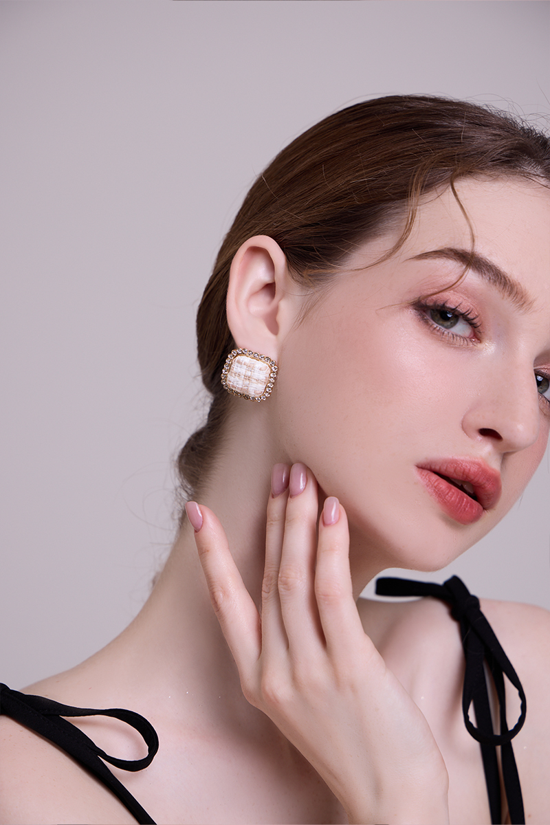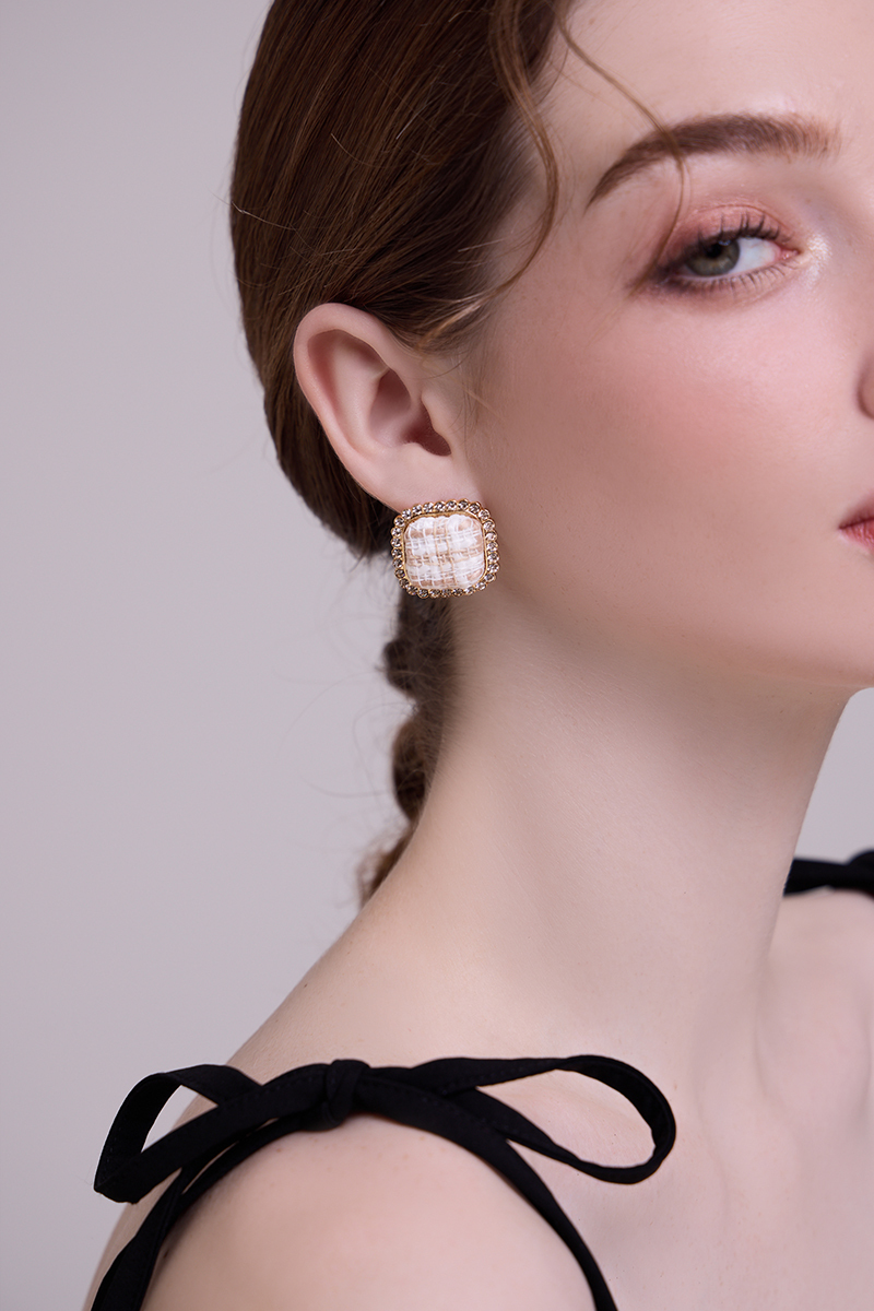 奢雅格紋。銀針耳環(米)