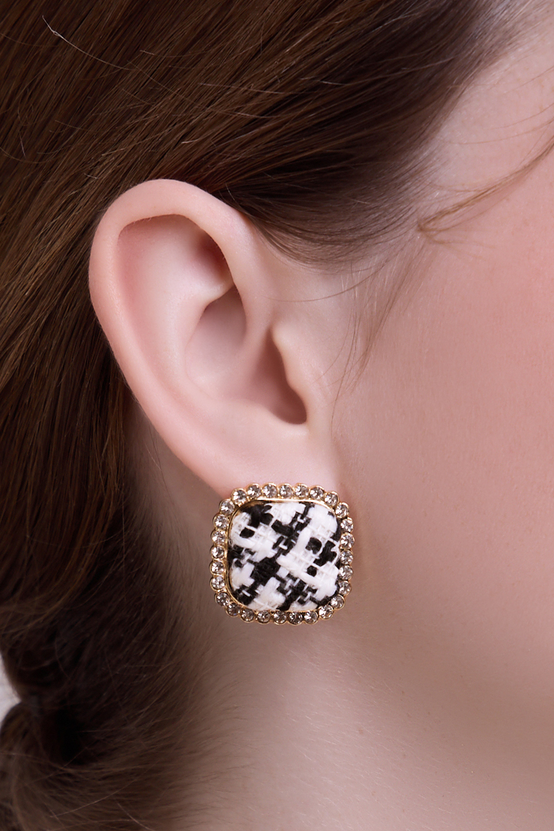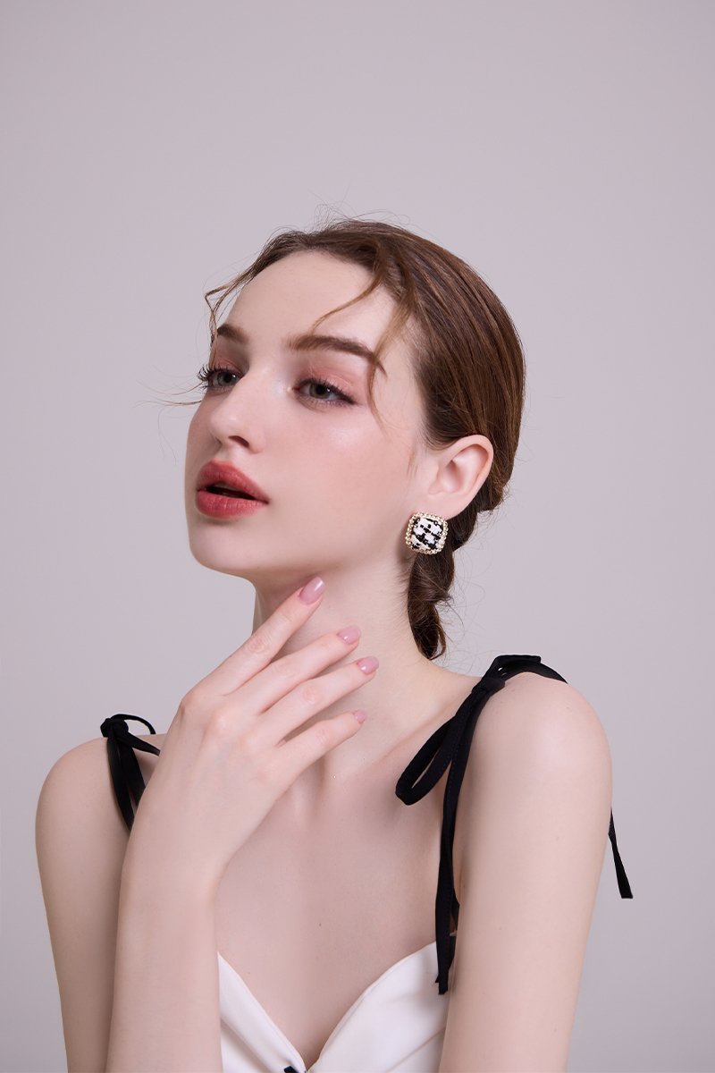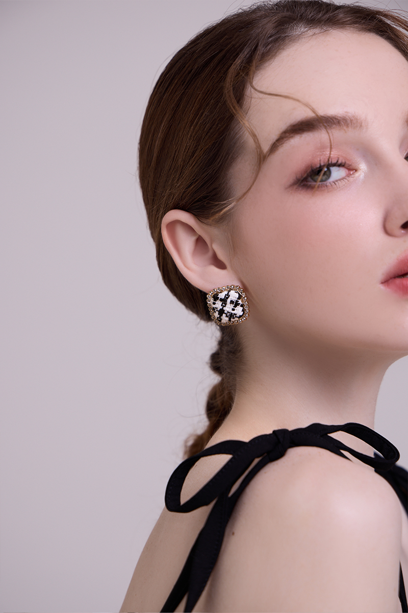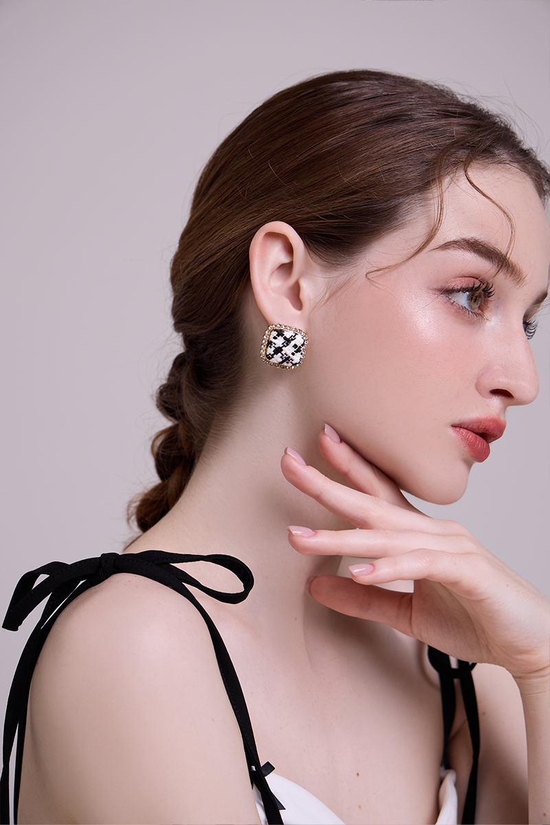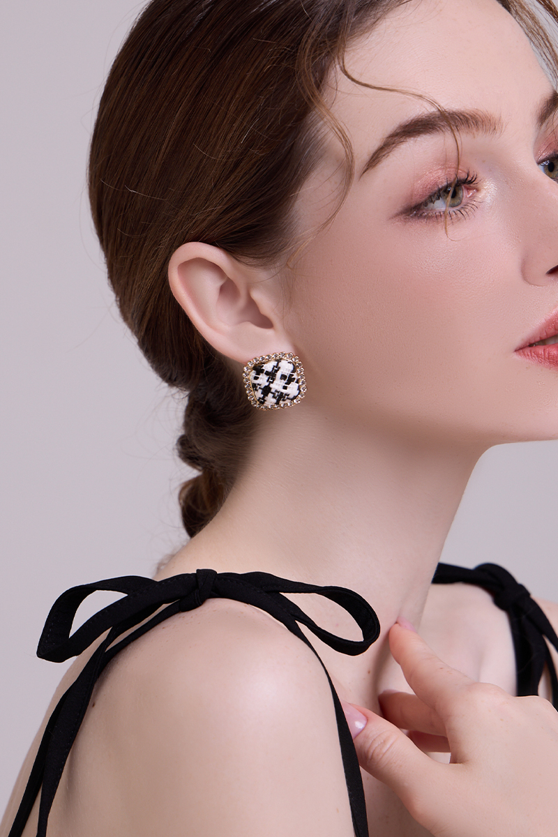 商品名稱: 奢雅格紋。銀針耳環(黑)