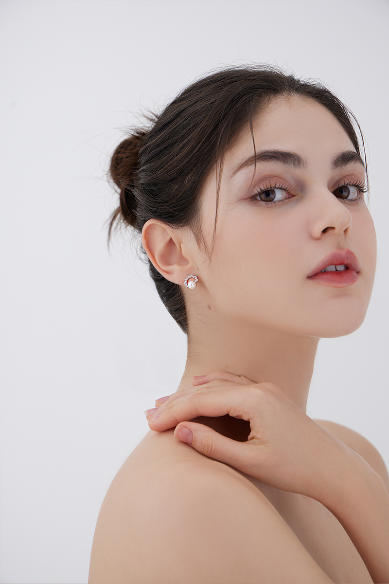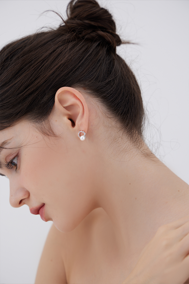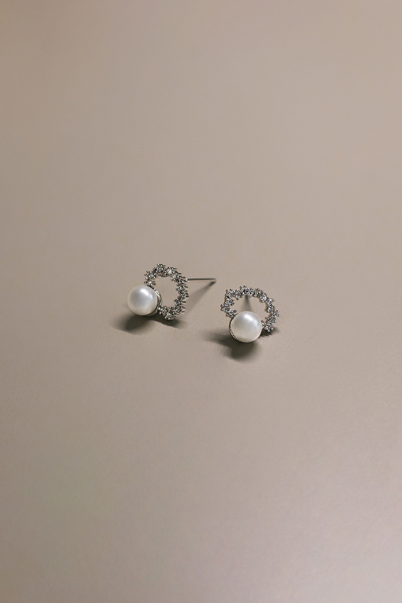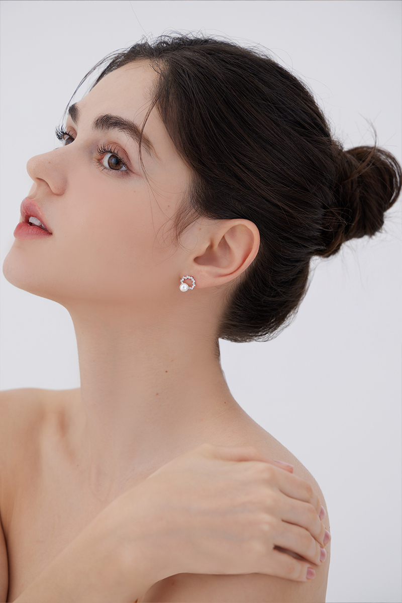 小巧珍珠璀璨。針式耳環