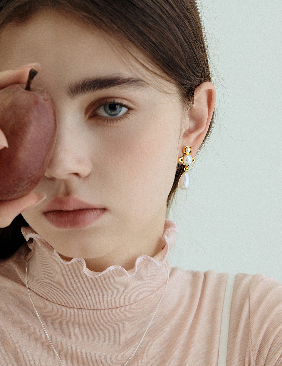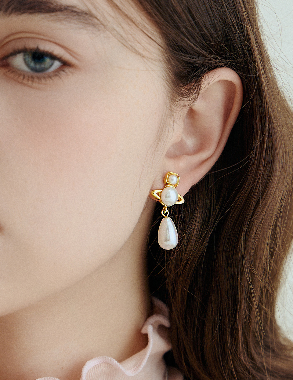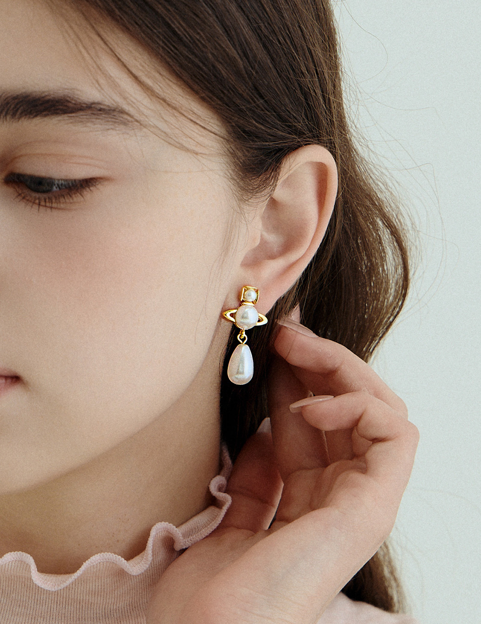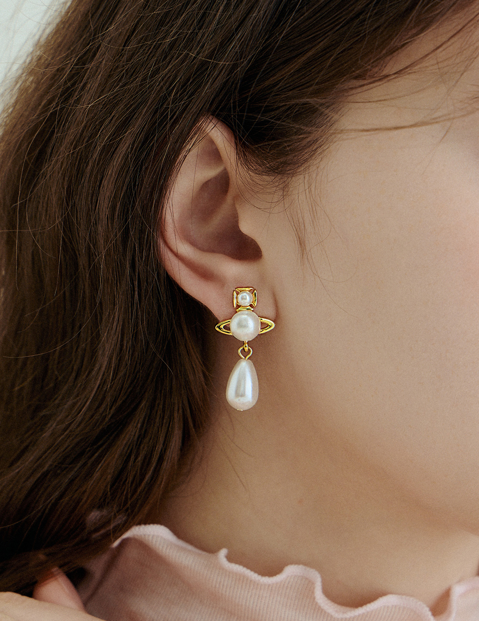 商品名稱:小行星垂墜珍珠。針式耳環