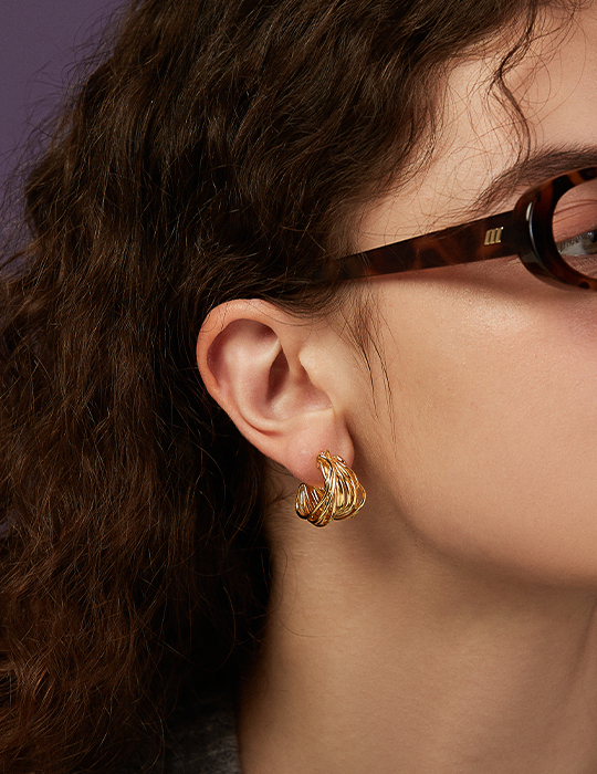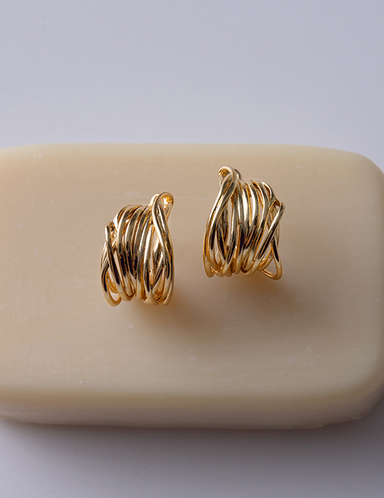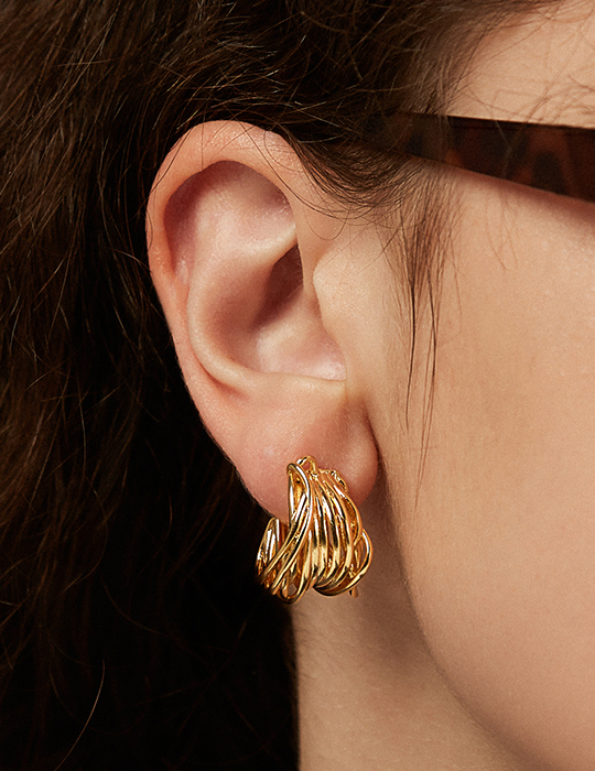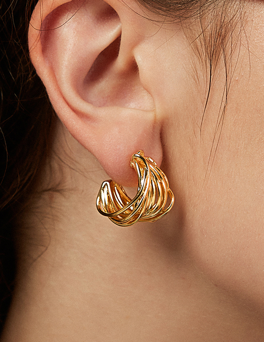 層次立體線圈。銀針耳環(金)