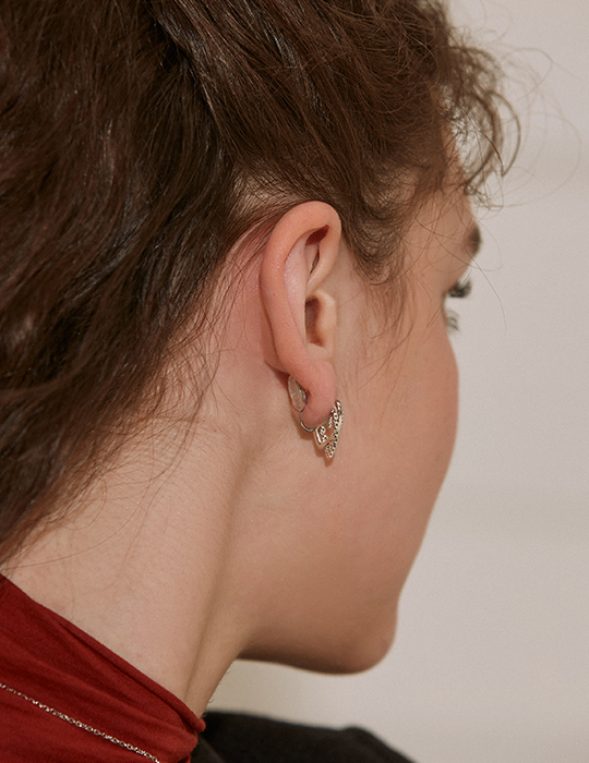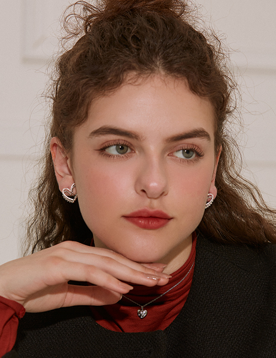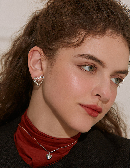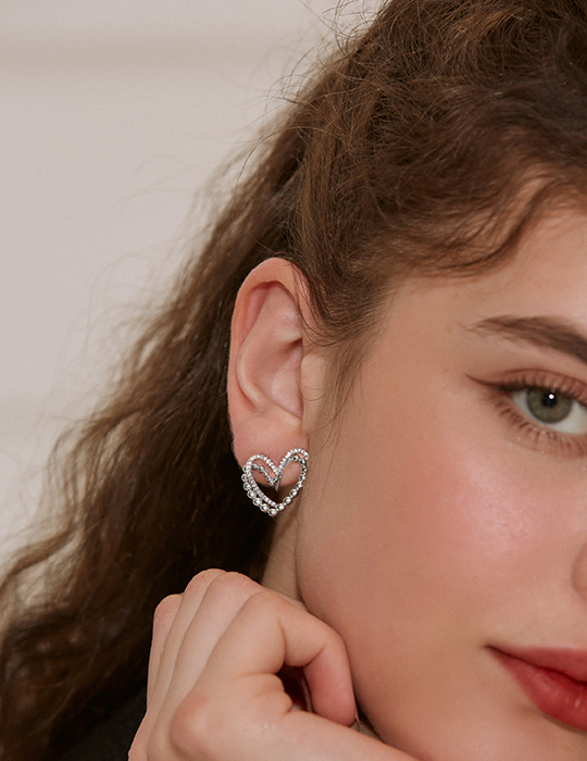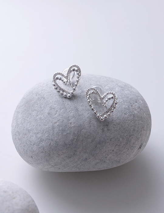層次鏤空愛心。夾式耳環(銀)