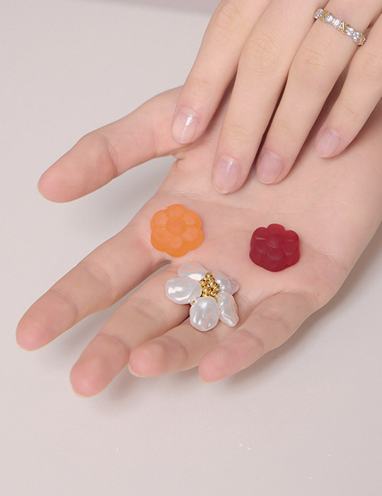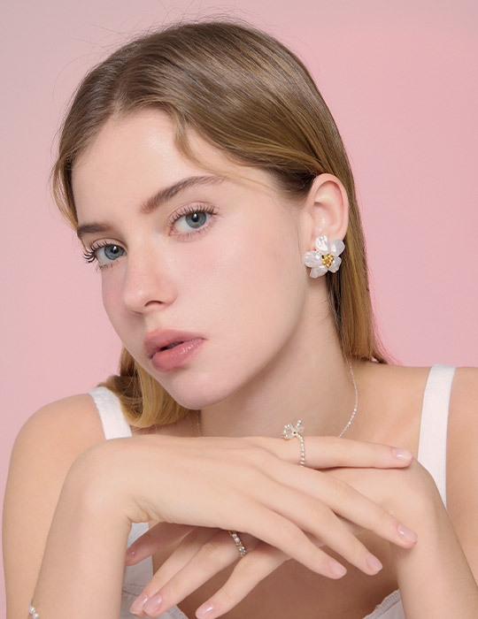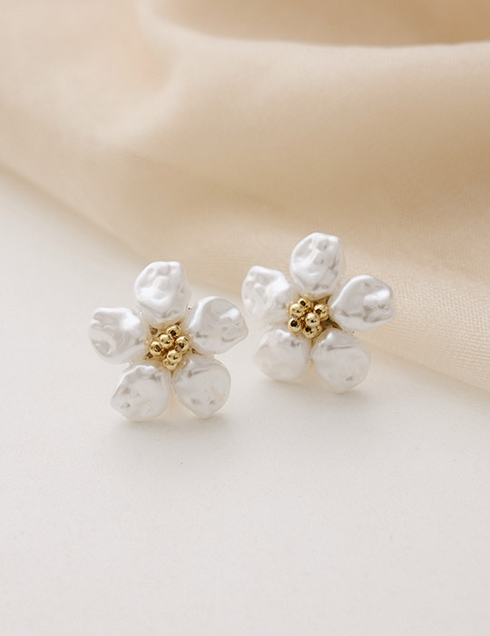 復古珍珠花朵。針式耳環