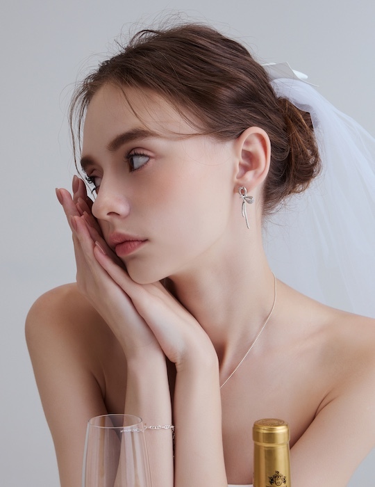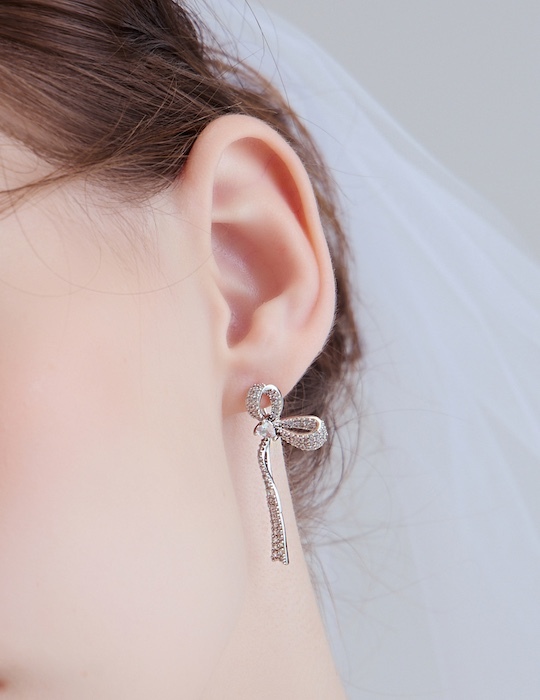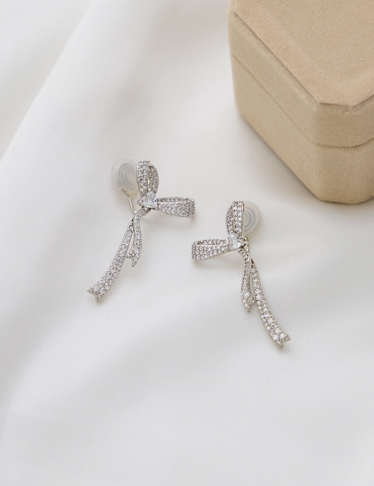 商品名稱:微光滿鑽蝴蝶結。夾式耳環