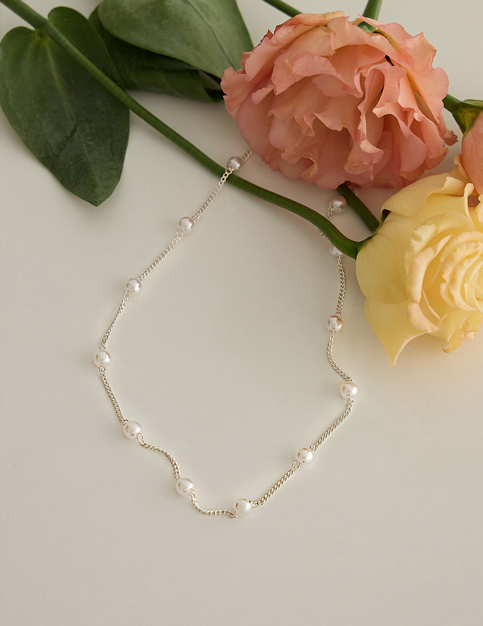 商品名稱:微光珍珠串鎖骨鍊(銀)