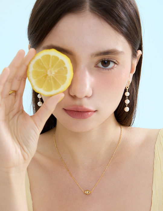 商品名稱:微鑲鑽可頌質感項鍊(金)