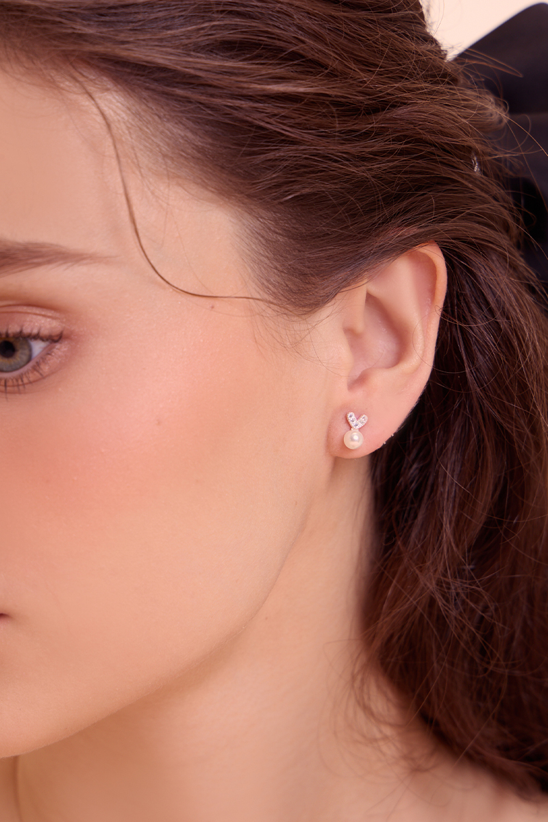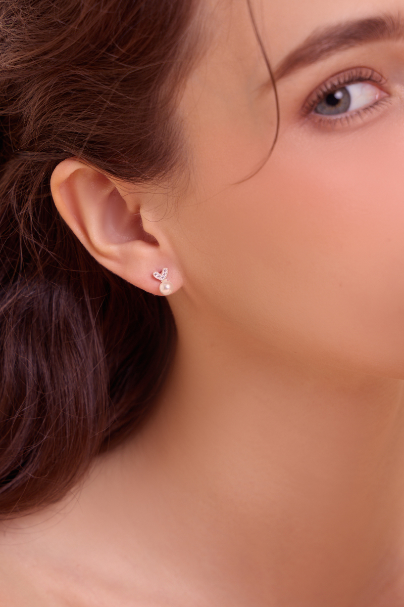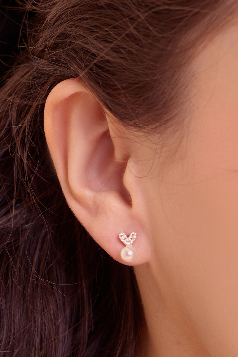 商品名稱: 愛心滿鑽珍珠。銀針耳環