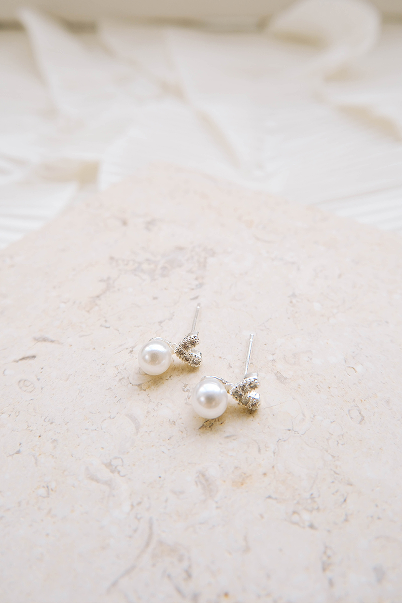 愛心滿鑽珍珠。銀針耳環