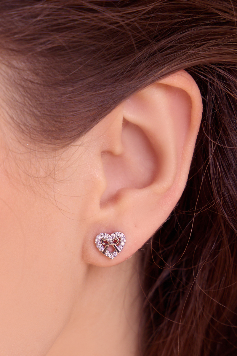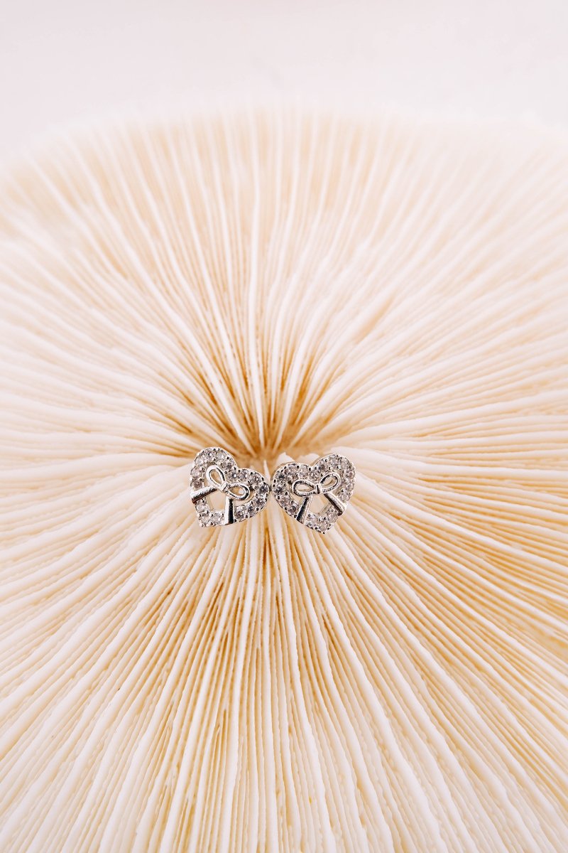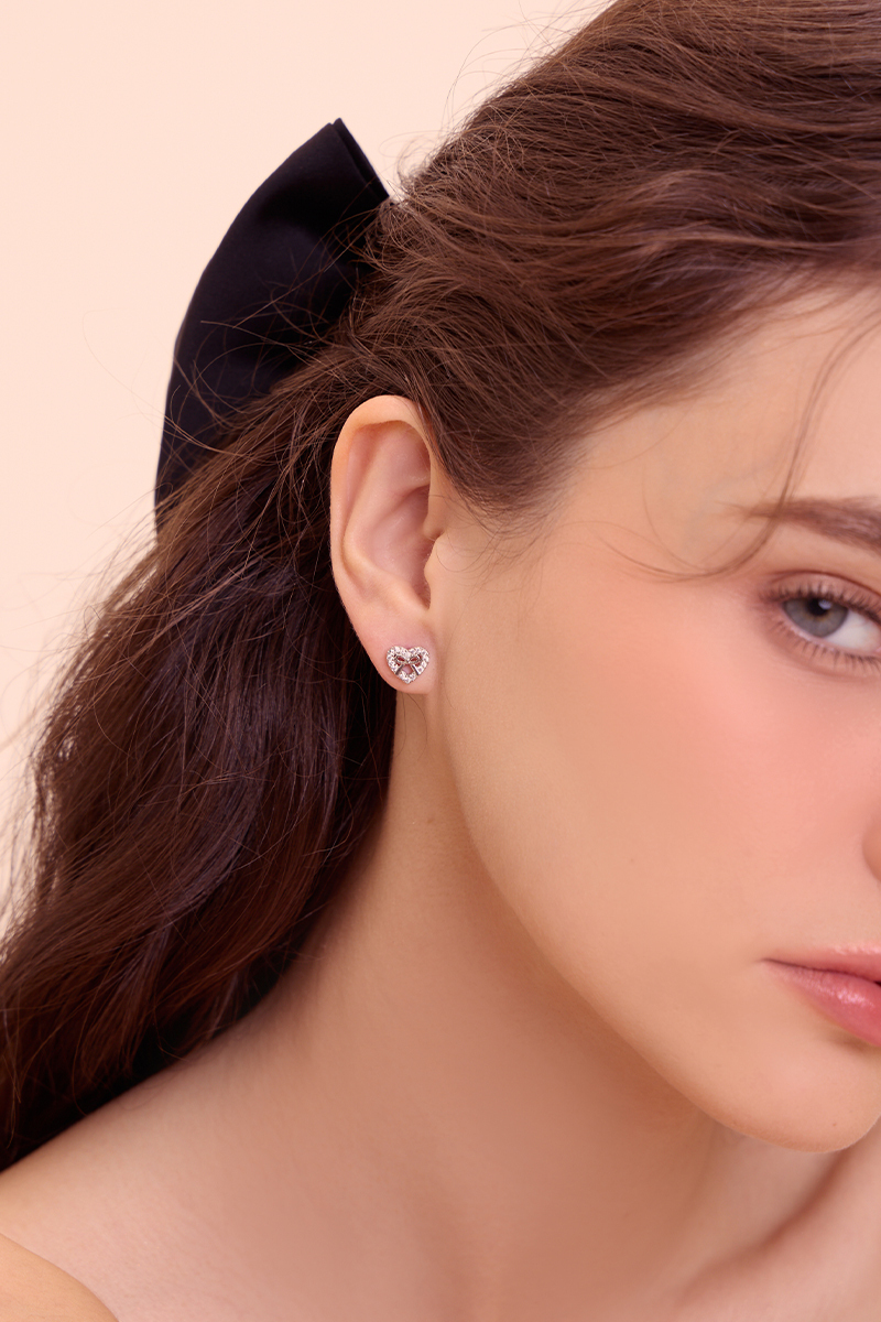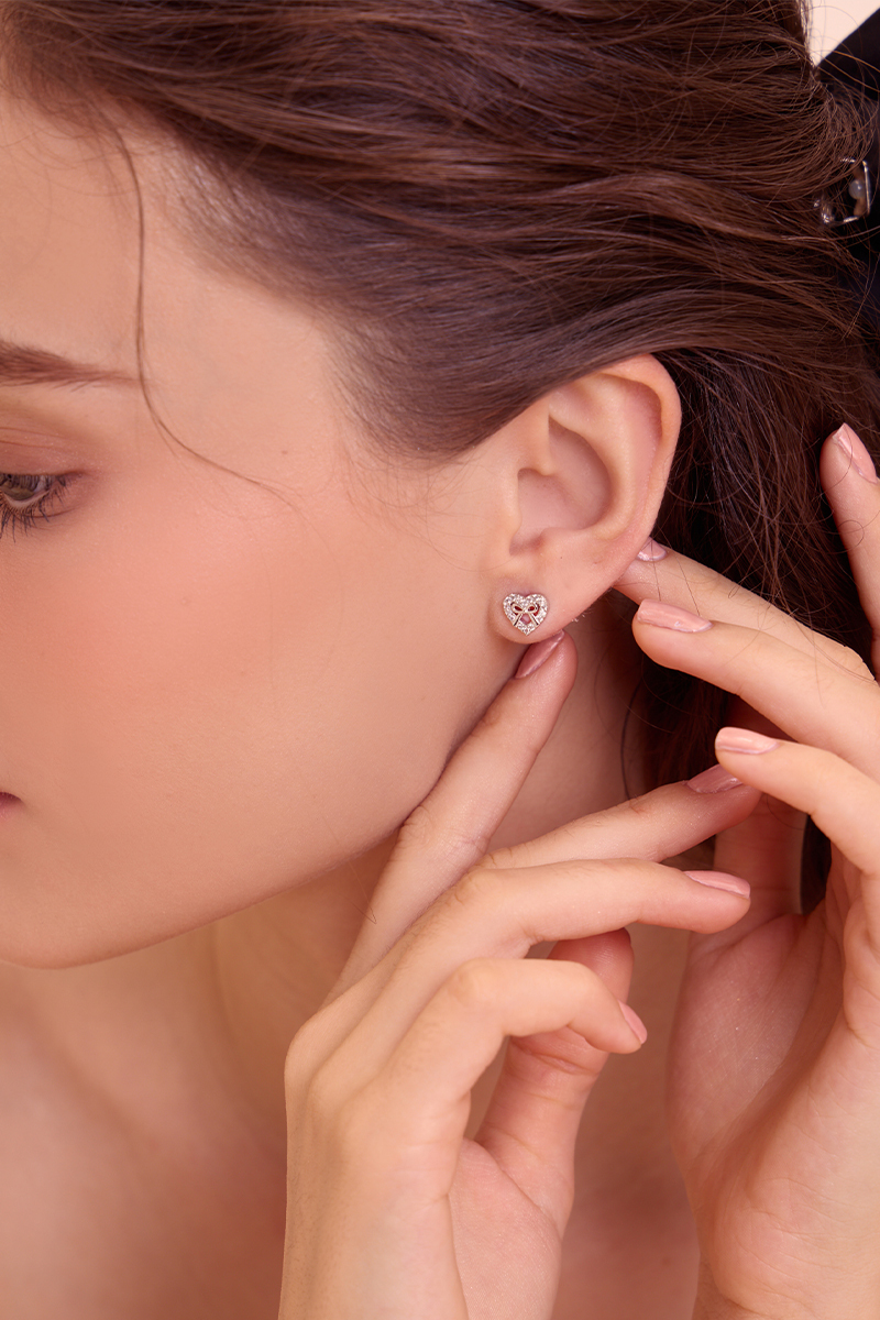 愛心滿鑽蝴蝶結。銀針耳環