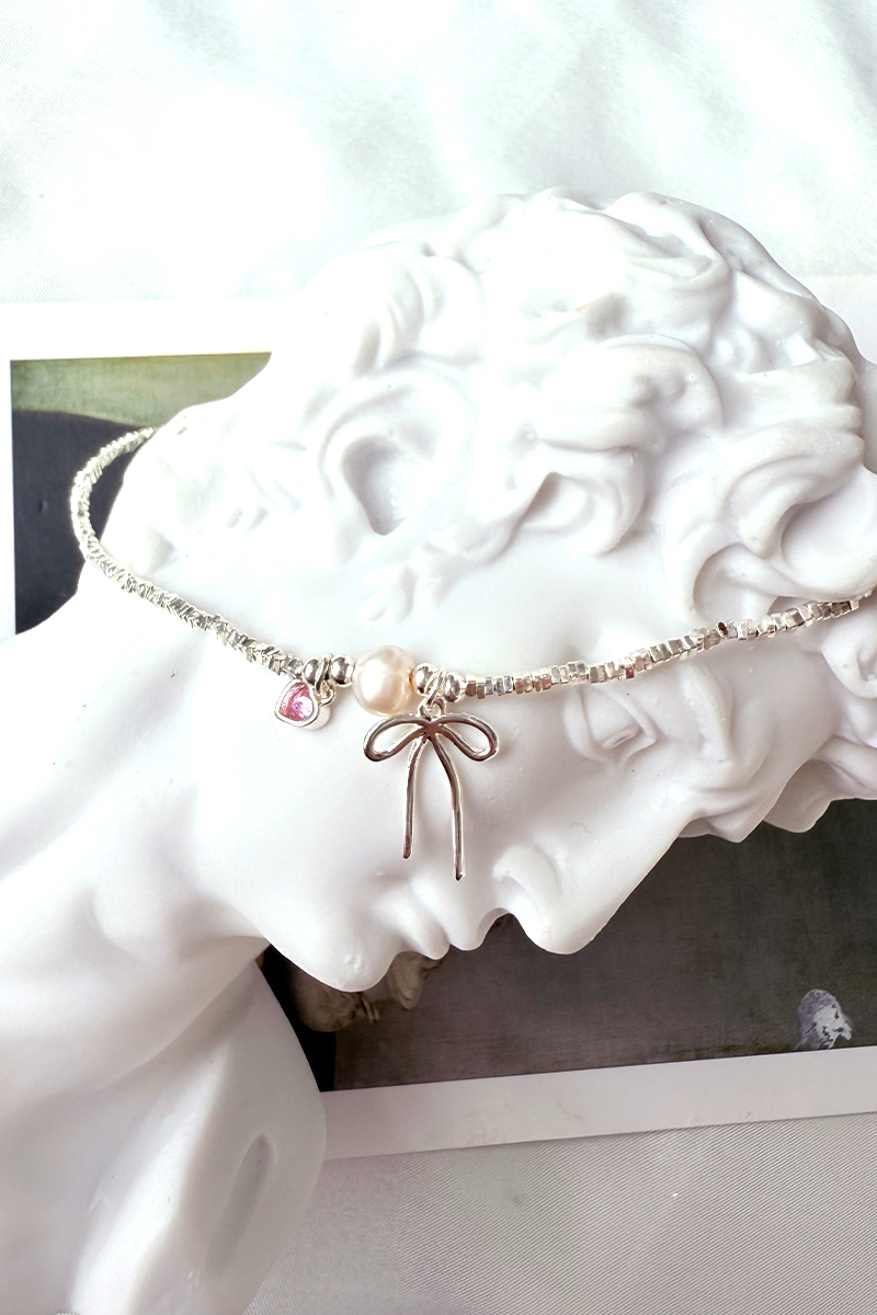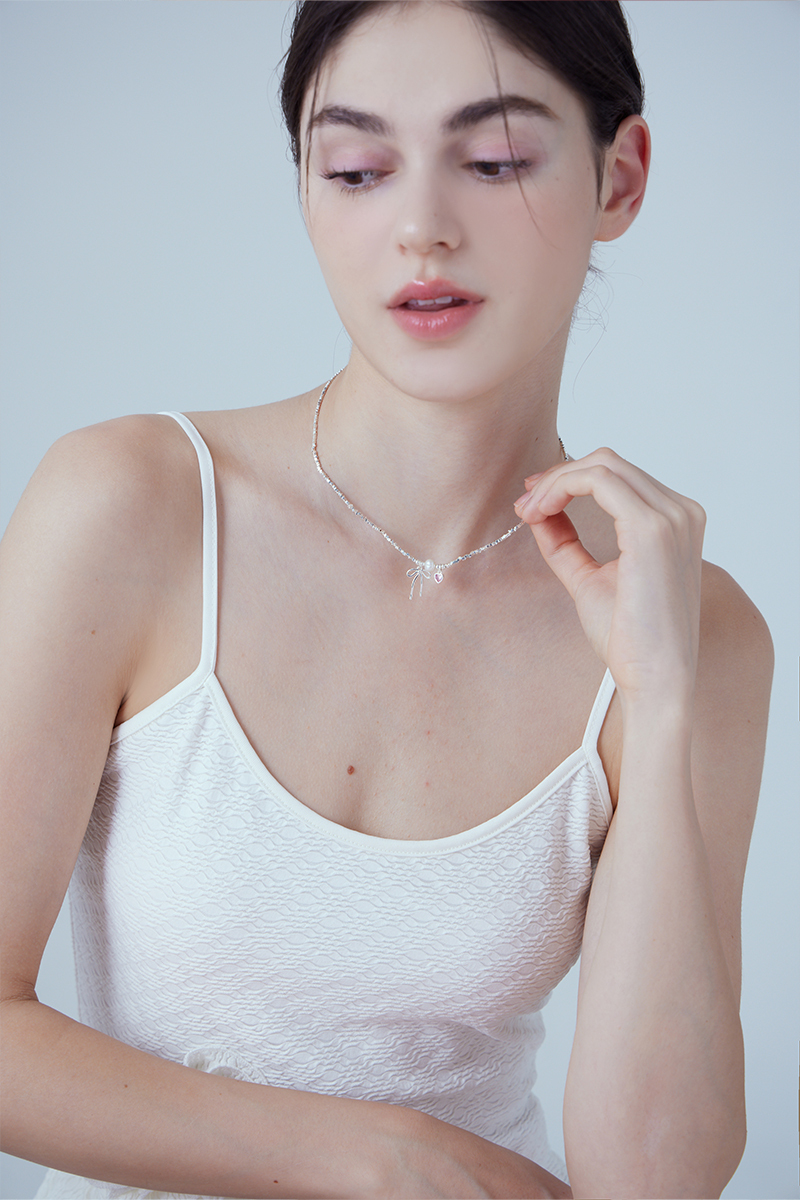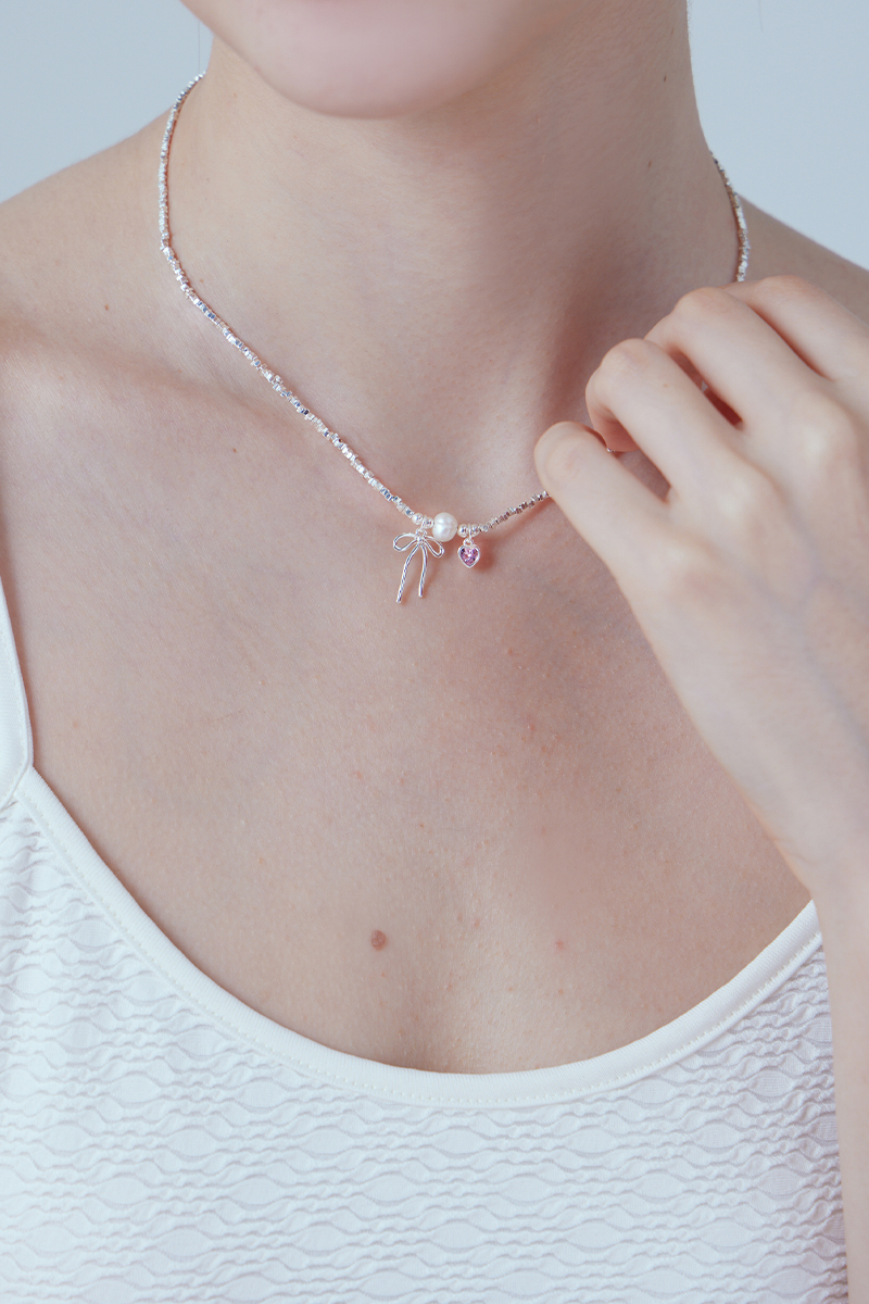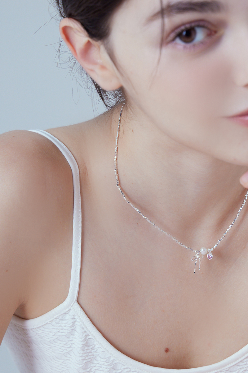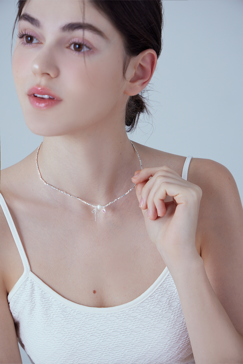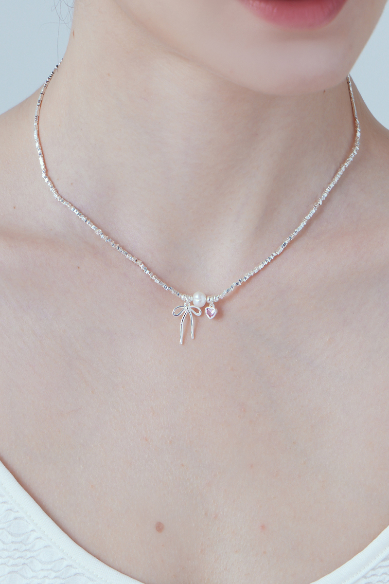 愛心粉鑽天然珍珠蝴蝶結項鍊