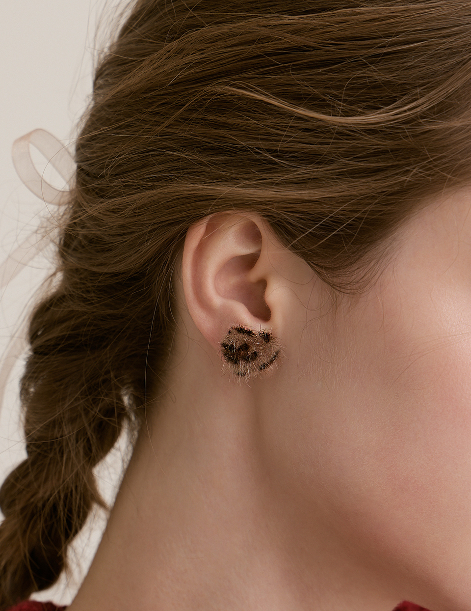 商品名稱:愛心豹紋。針式耳環(深棕)