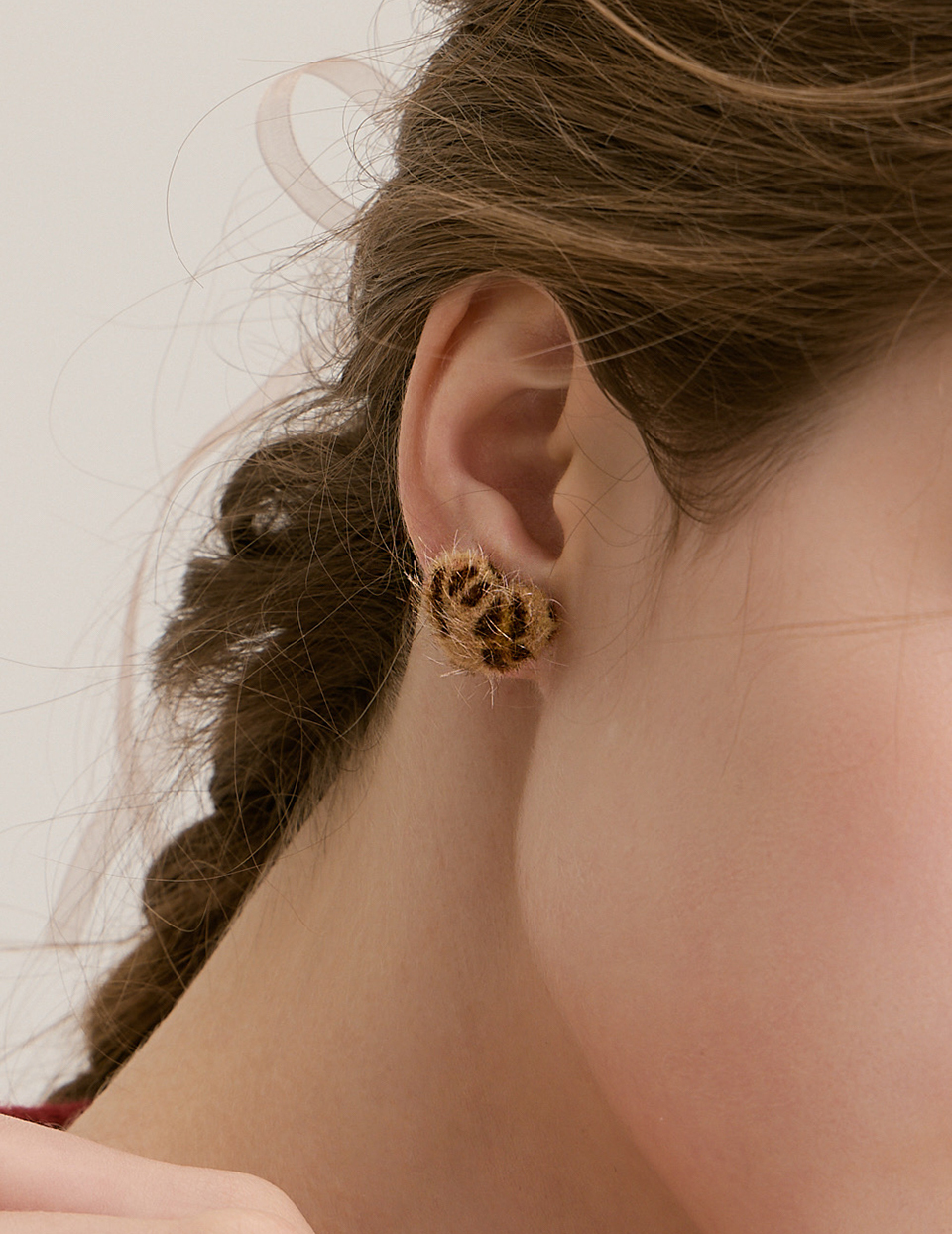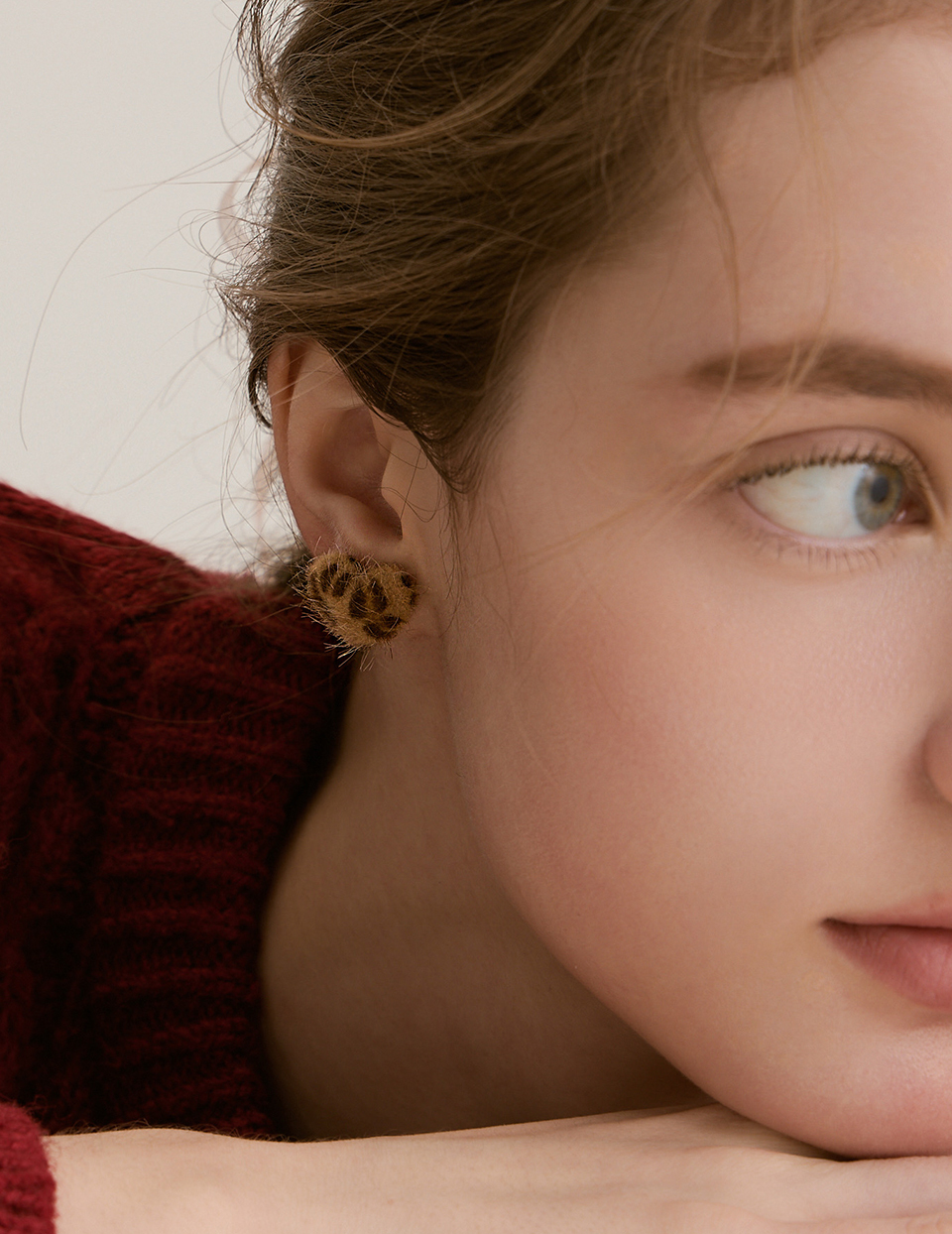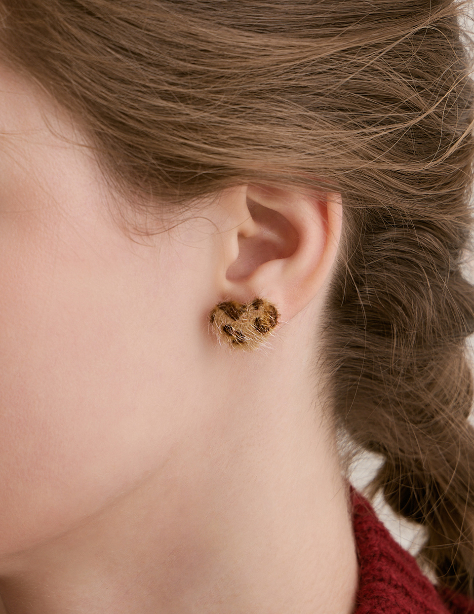 商品名稱:愛心豹紋。針式耳環(淺棕)