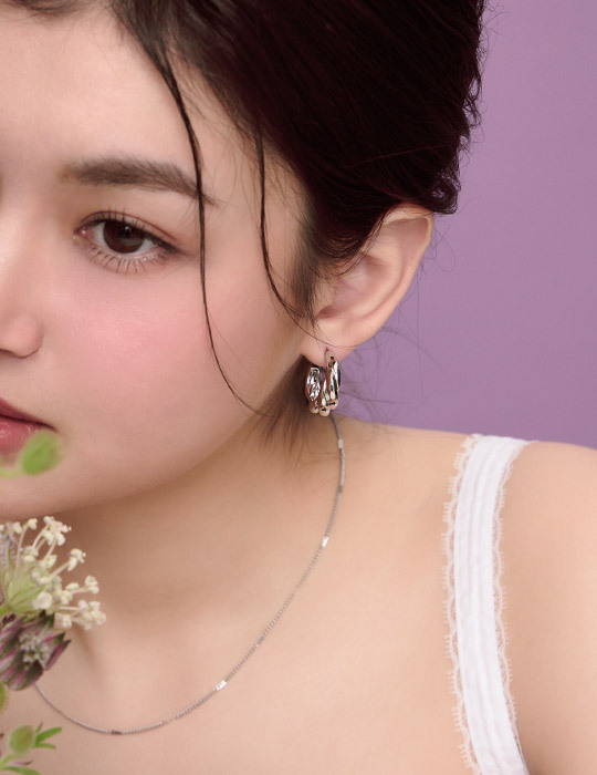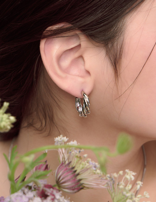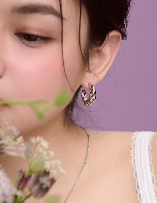 扭轉設計牛角圈圈。針式耳環