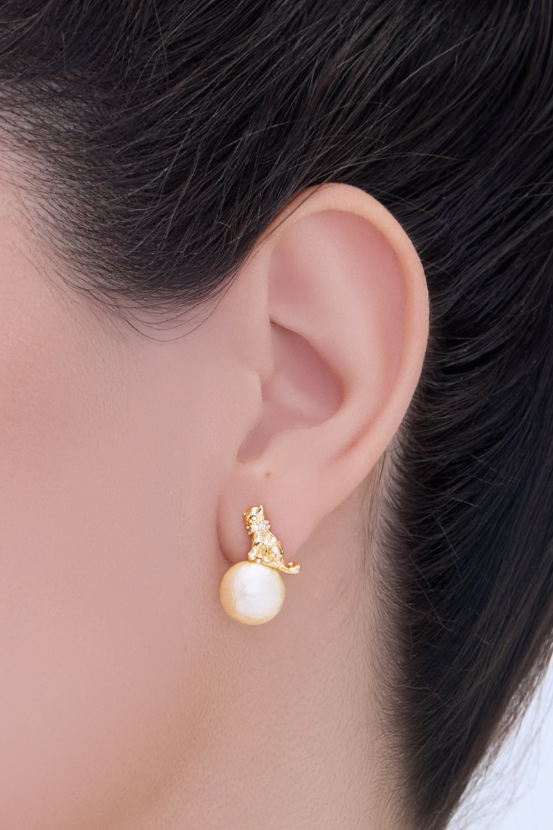商品名稱: 招財立體貓咪棉花珍珠。銀針耳環