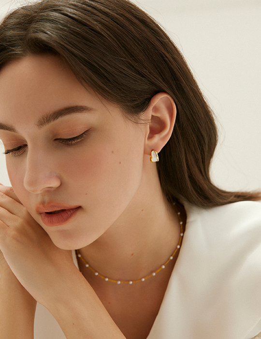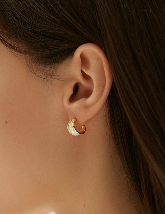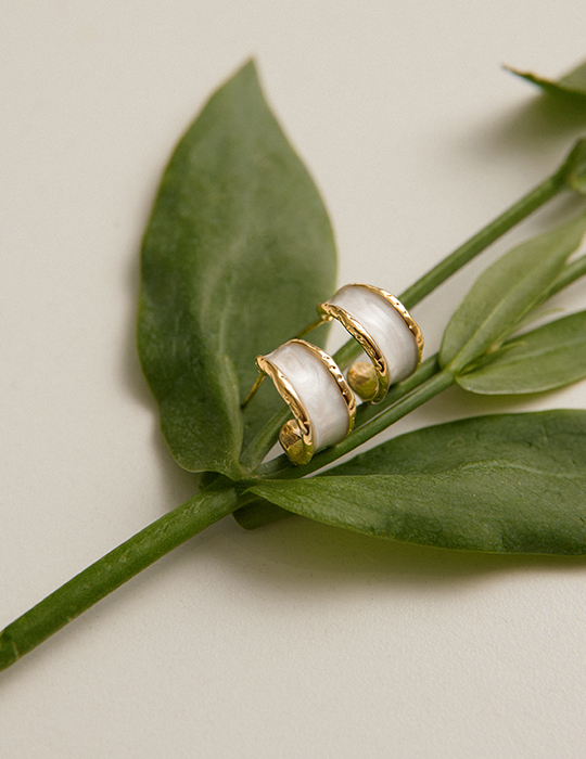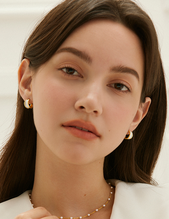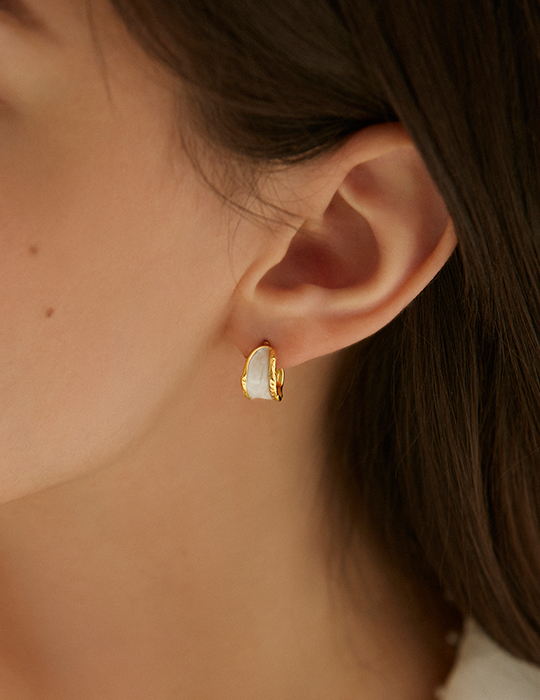 捲邊奶油感C型畫釉。銀針耳環(金)