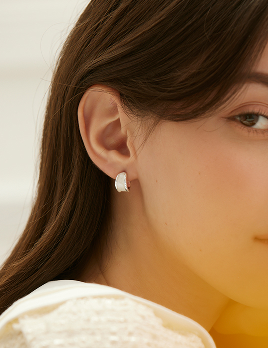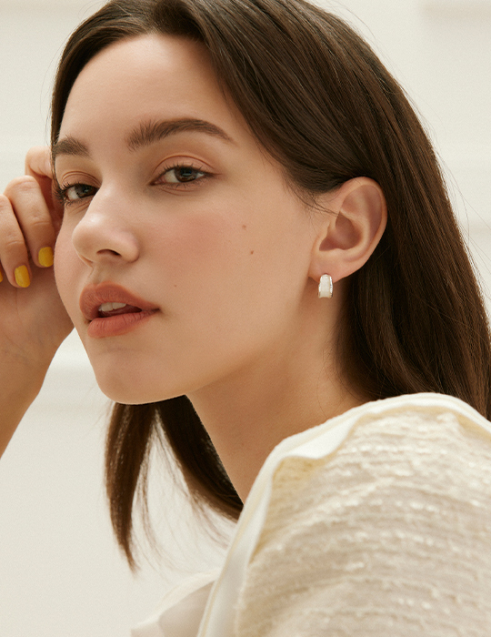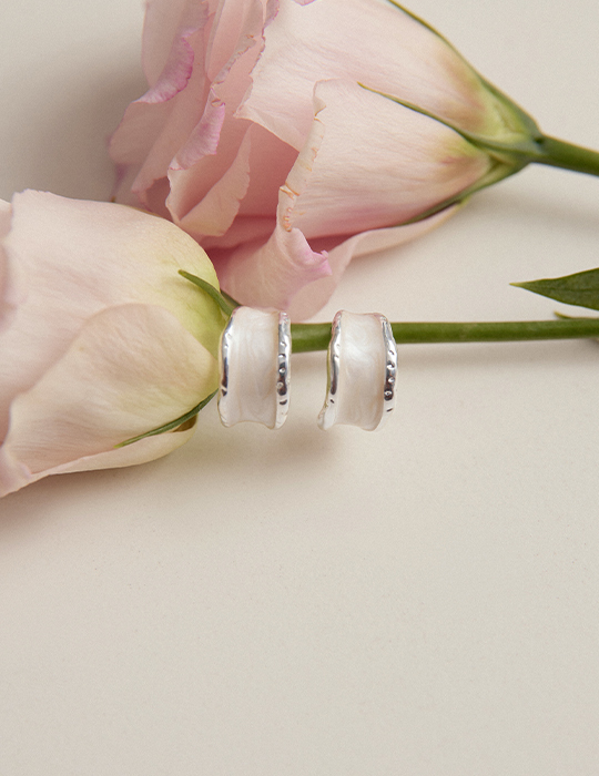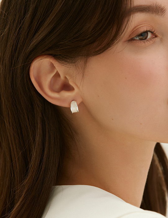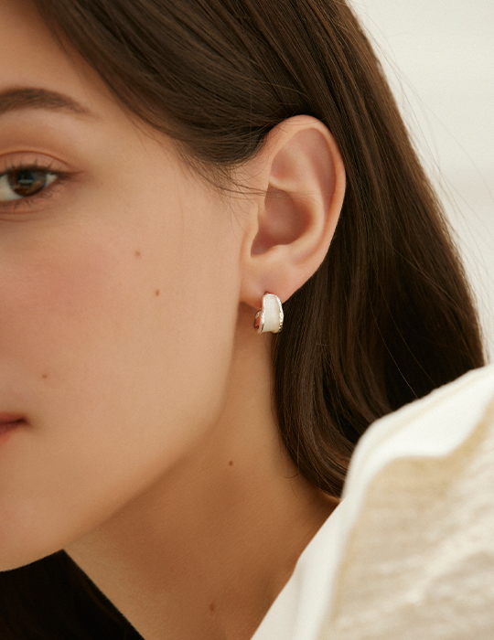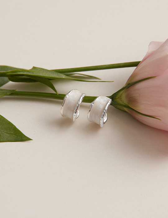 捲邊奶油感C型畫釉。銀針耳環(銀)