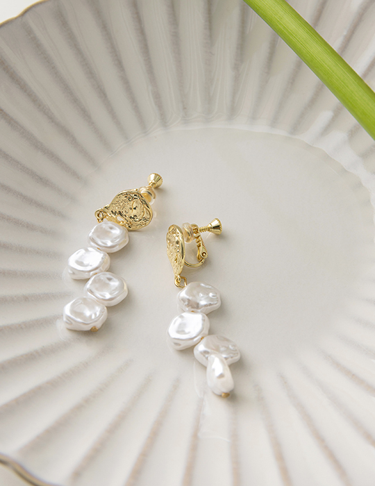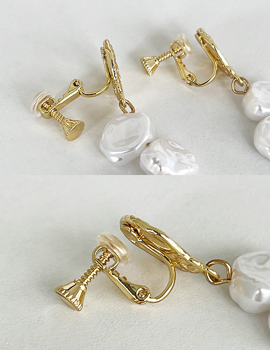 商品材質:14K金電鍍銅/人造珍珠/可調整螺旋耳夾/附贈透明矽膠軟墊