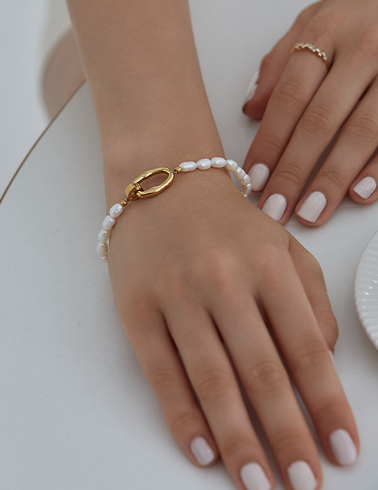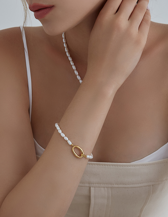 商品材質: 18K金電鍍鈦鋼/淡水珍珠