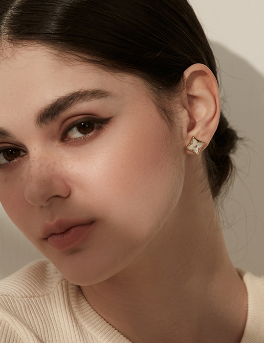 方形小花朵。夾式耳環