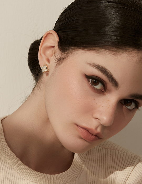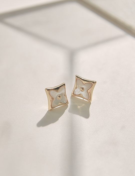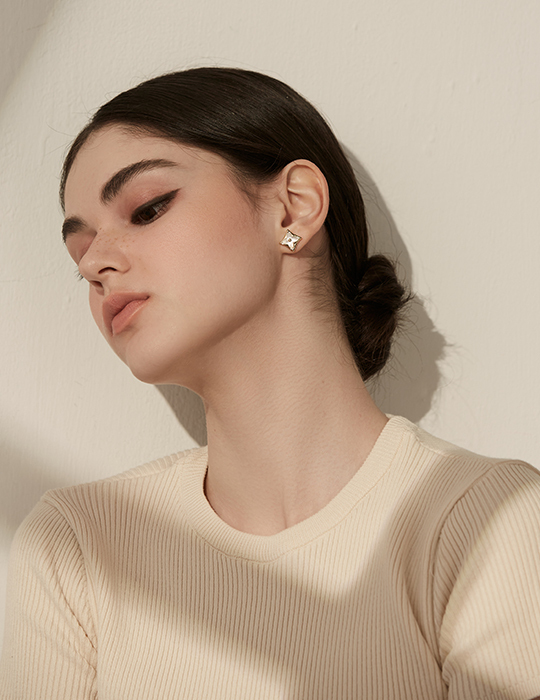 方形小花朵。銀針耳環