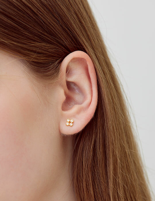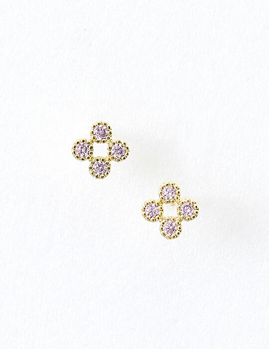方形微鑲小鋯石。銀針耳環