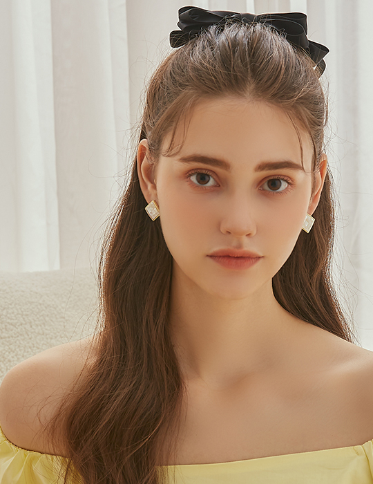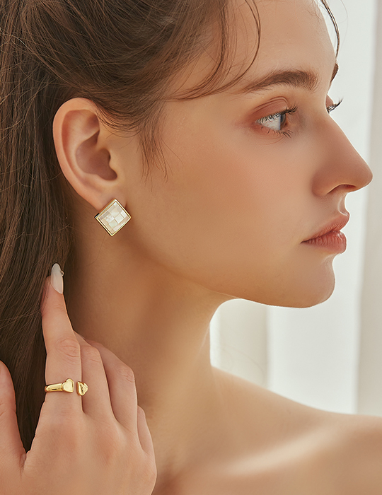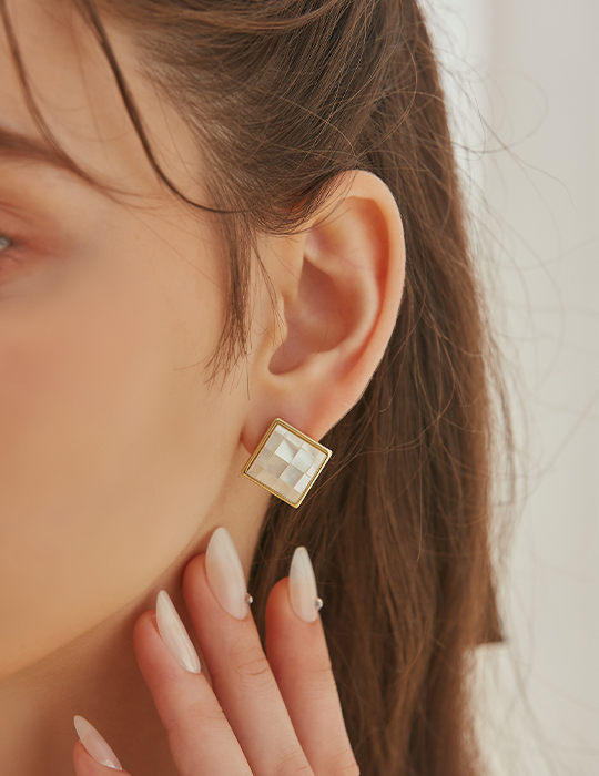 方形貝殼拼接。銀針耳環