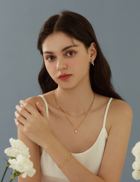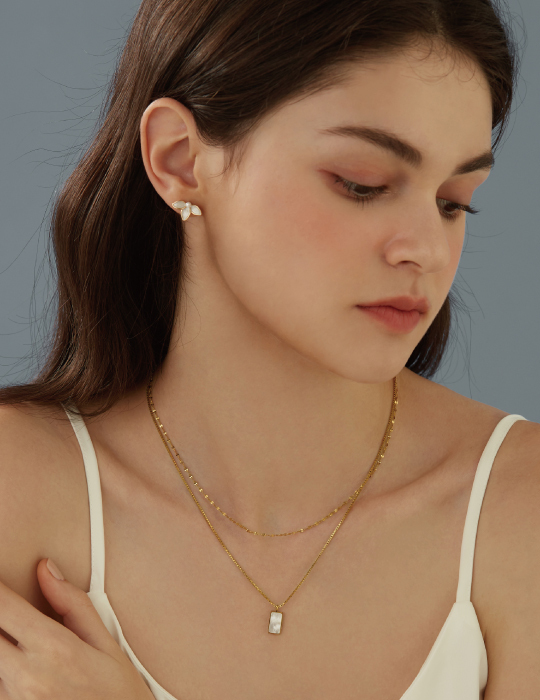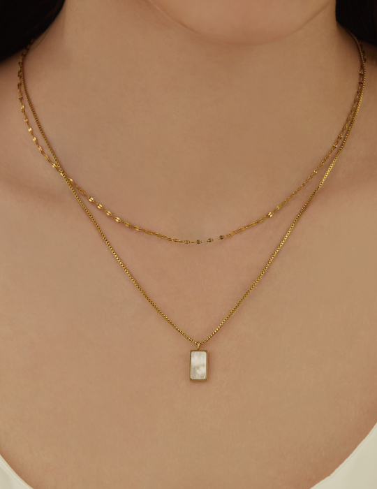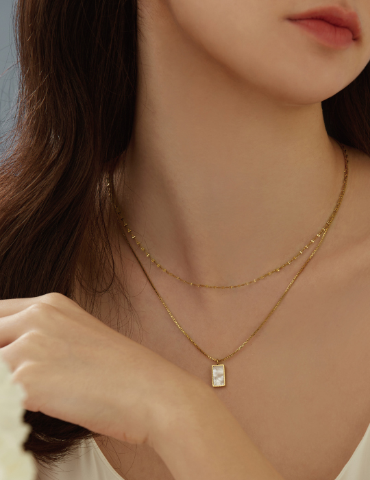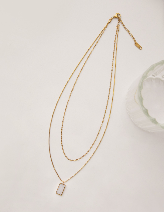方形貝殼雙層項鍊