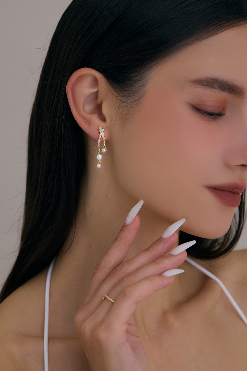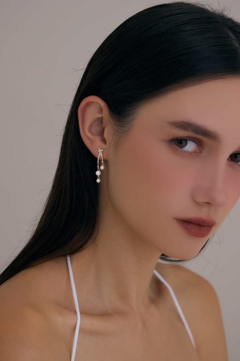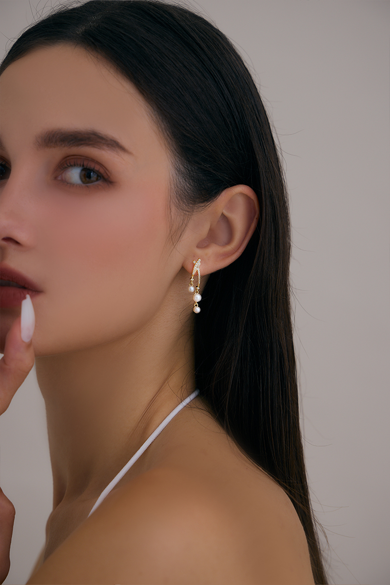 商品名稱: 星河珍珠鋯石。銀針耳環