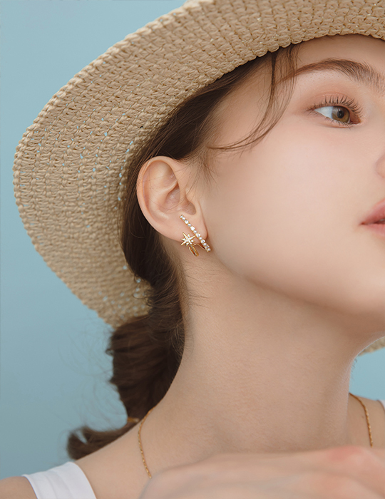 星芒雙層設計。銀針耳環
