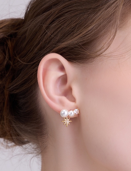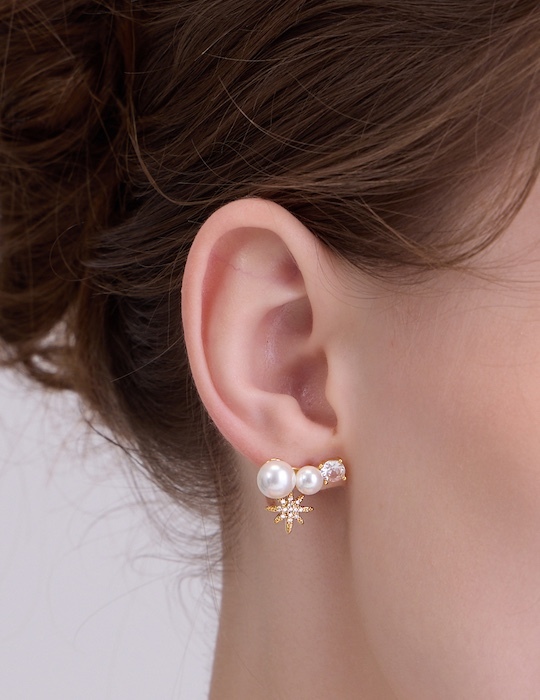 星點珍珠光芒。銀針耳環