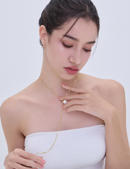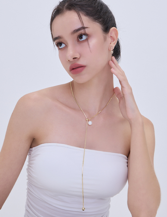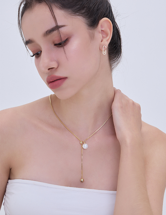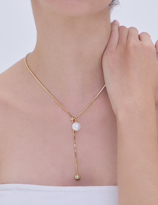 商品名稱:時髦抽繩珍珠項鍊(金)