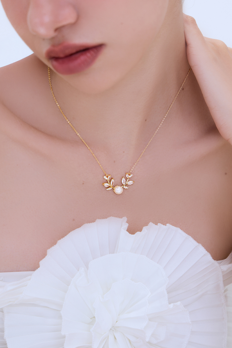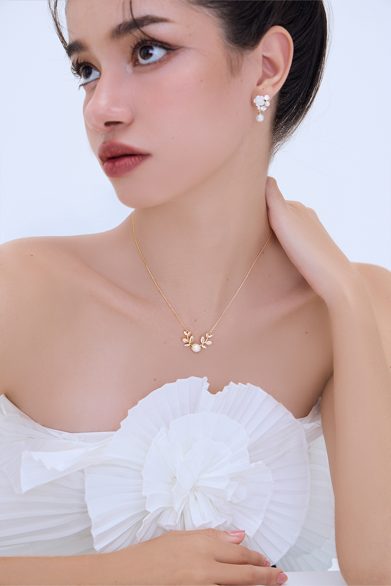 材質:14K金電鍍銅/手工珍珠/鋯石