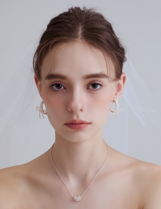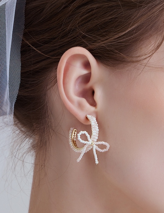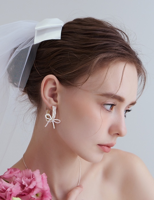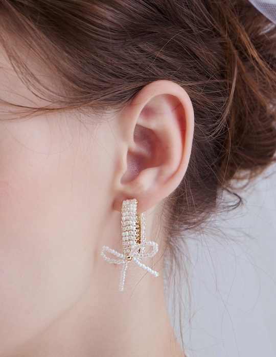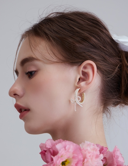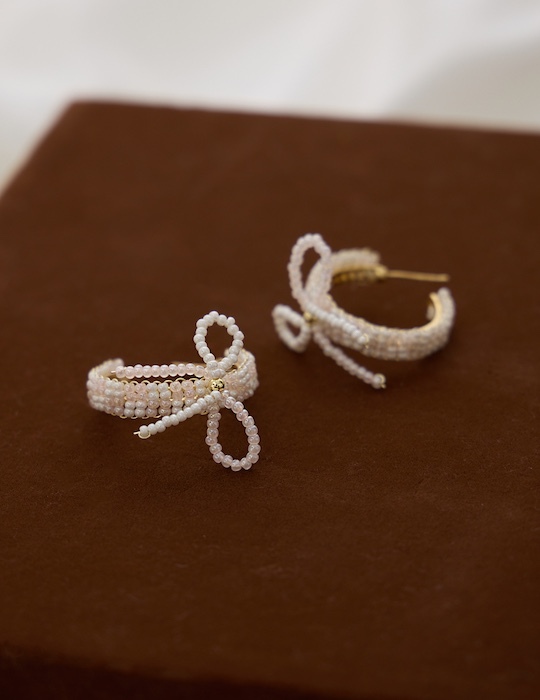 商品名稱:柔粉蝴蝶結編織。銀針耳環