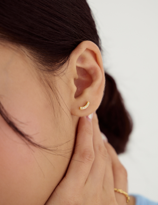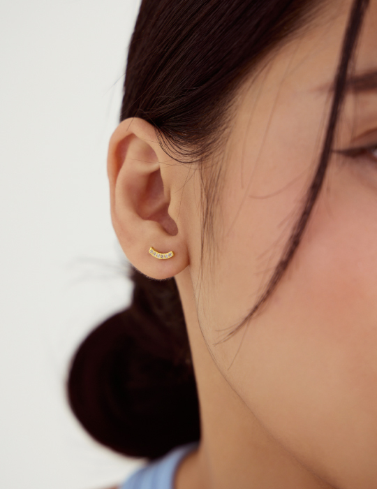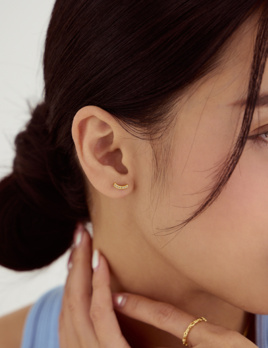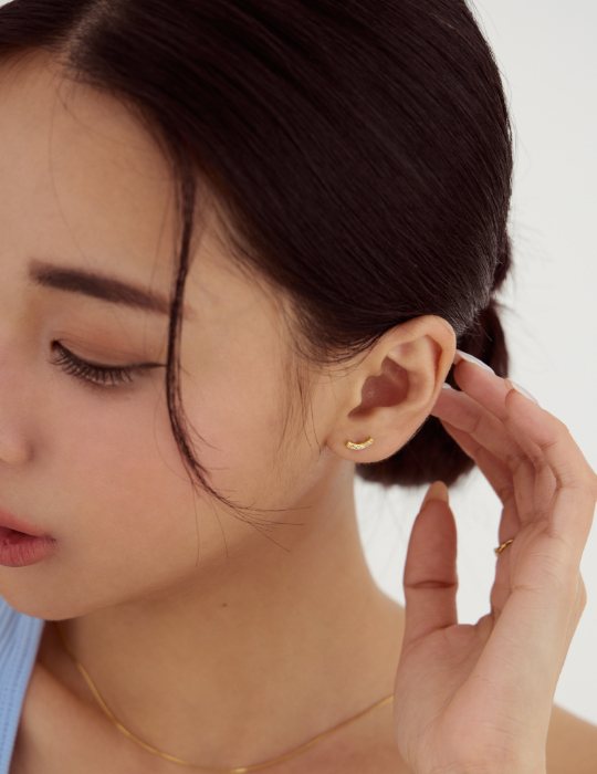 極簡流線鋯石。銀針耳環