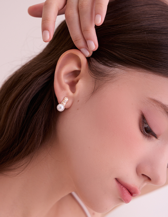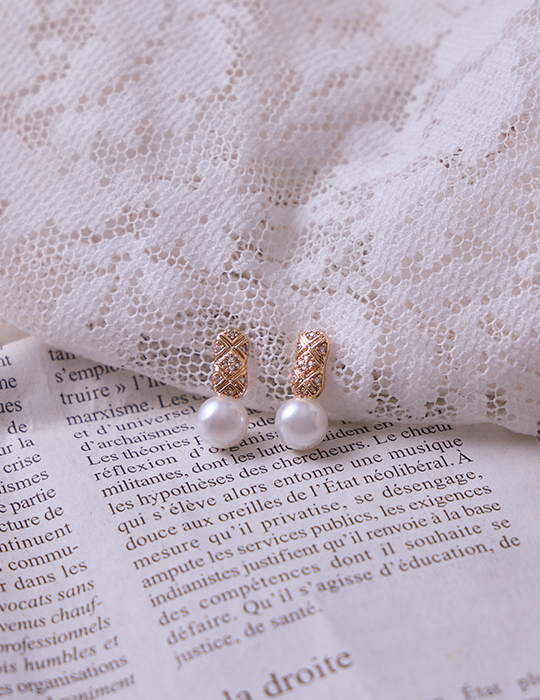 歐式交叉紋珍珠。銀針耳環