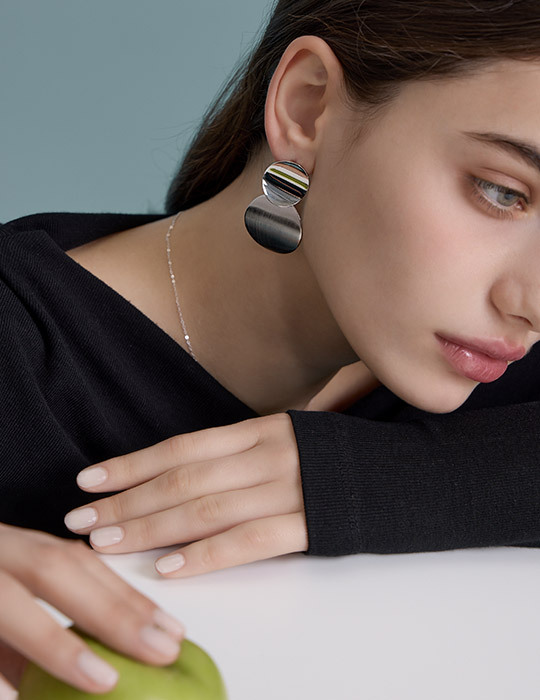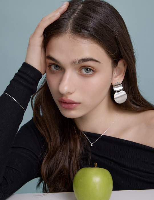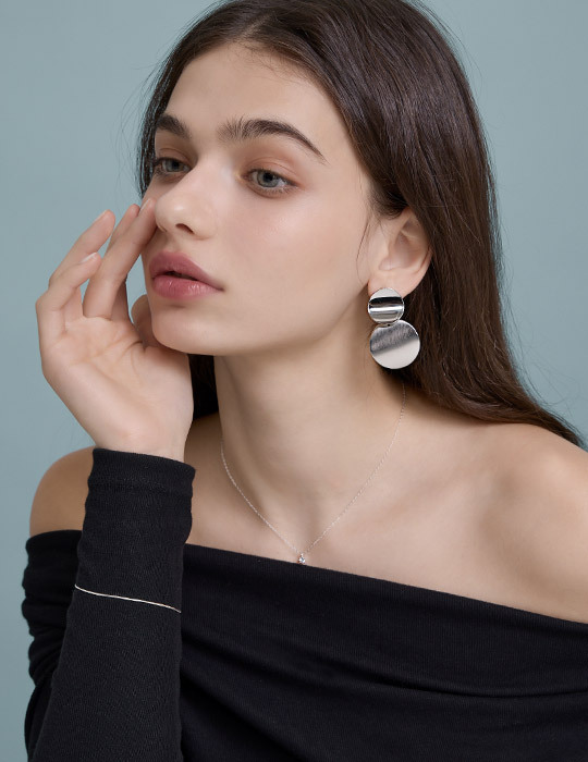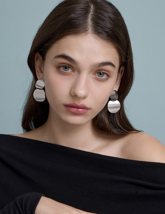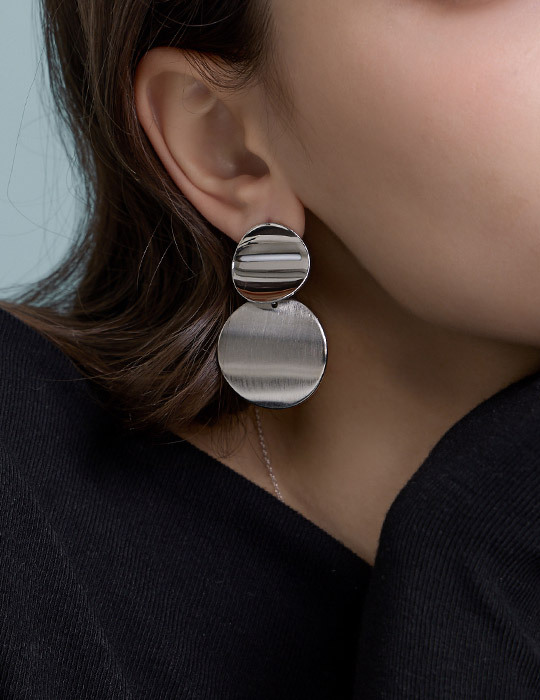 歐美金屬拉絲圓片。銀針耳環(銀)